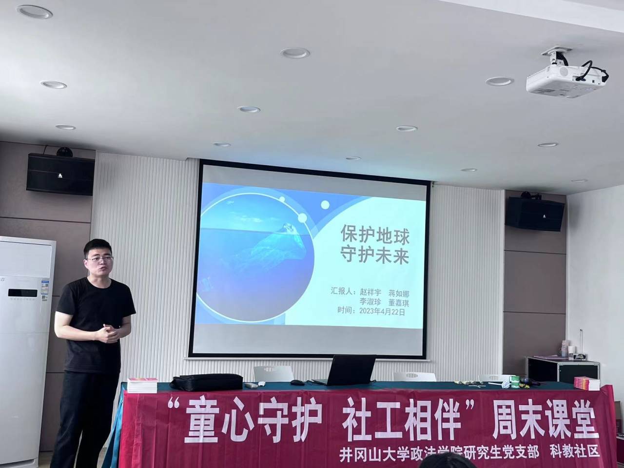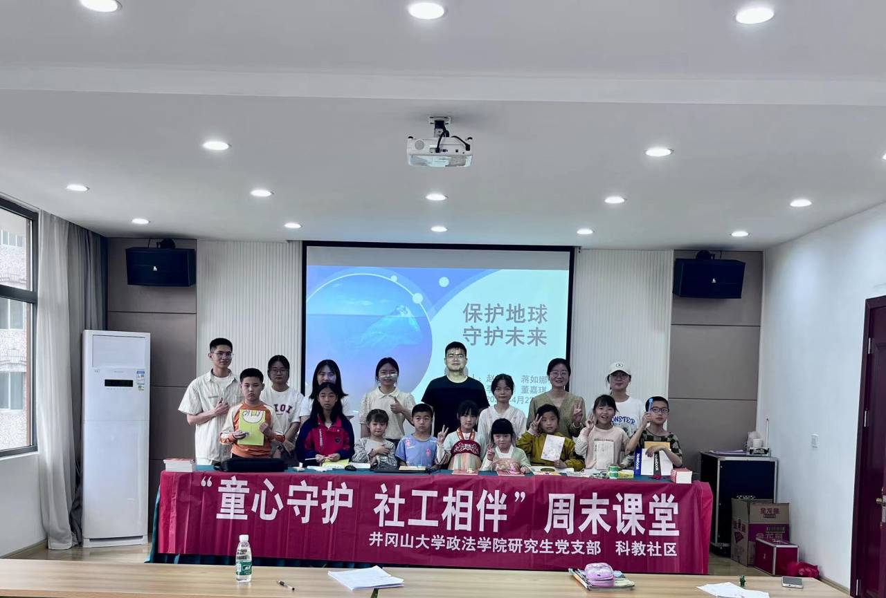 世界地球日,即每年的4月22日,是一个专门为世界环境保护而设立的节日,旨在提高民众对于现有环境问题的认识,并动员民众参与到环保运动中,通过绿色低碳生活,改善地球的整体环境。2023年4月22日,井冈山大学政法学院研究生党支部与科教社区党支部党员干部联合开展“童心守护 社工相伴”为主题的环境保护周末课堂活动。