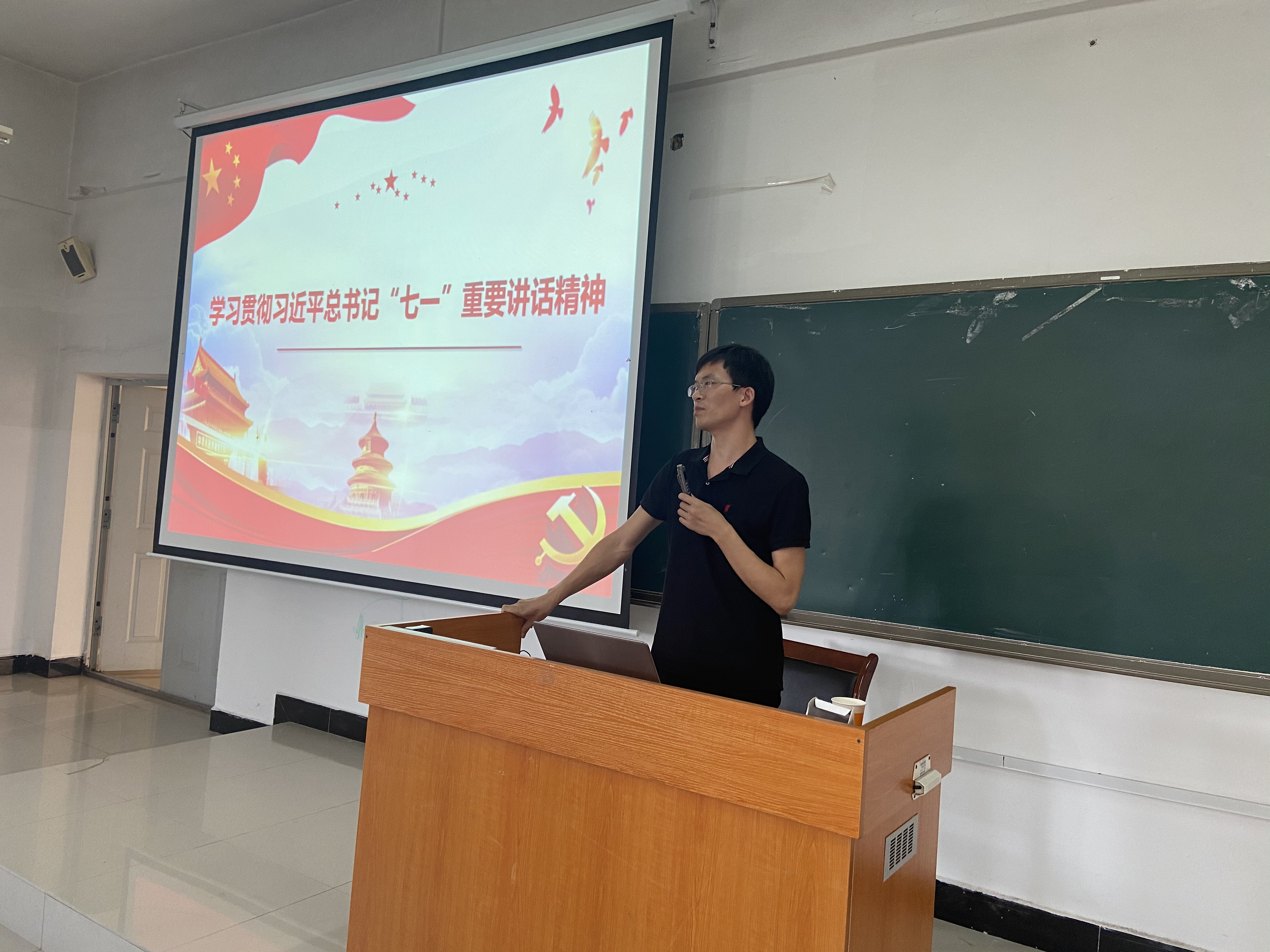 为深入学习贯彻习近平总书记“七一”重要讲话精神,进一步推动习近平总书记“七一”重要讲话精神进教材、进课堂、进头脑,政法学院成立以学院领导班子成员和党支部书记共同组成学院党委宣讲团,走进联系班级开展宣讲。