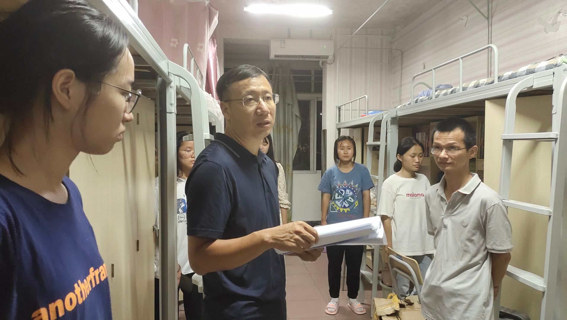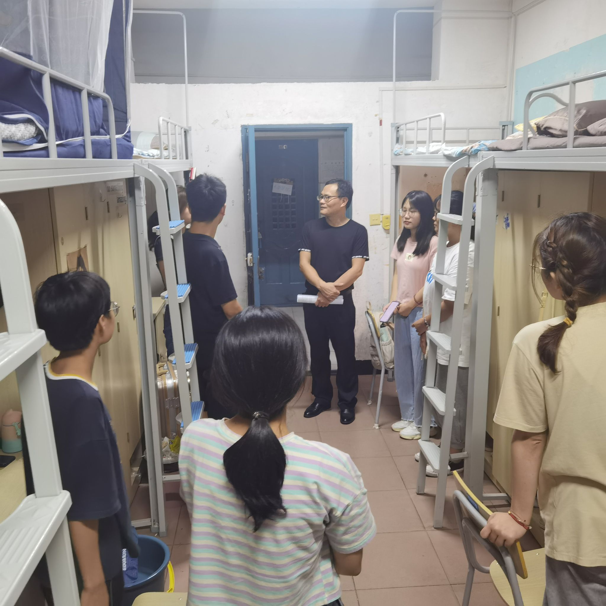 为详细了解新生情况,帮助其尽快适应大学生活,9月10日晚19时30分,党委书记吴高平,学院院长仰和芝,党委副书记喻聪,副院长欧阳晓安、李耀锋、邹宗根,新生班主任,辅导员及学生干部等一行走访新生寝室。