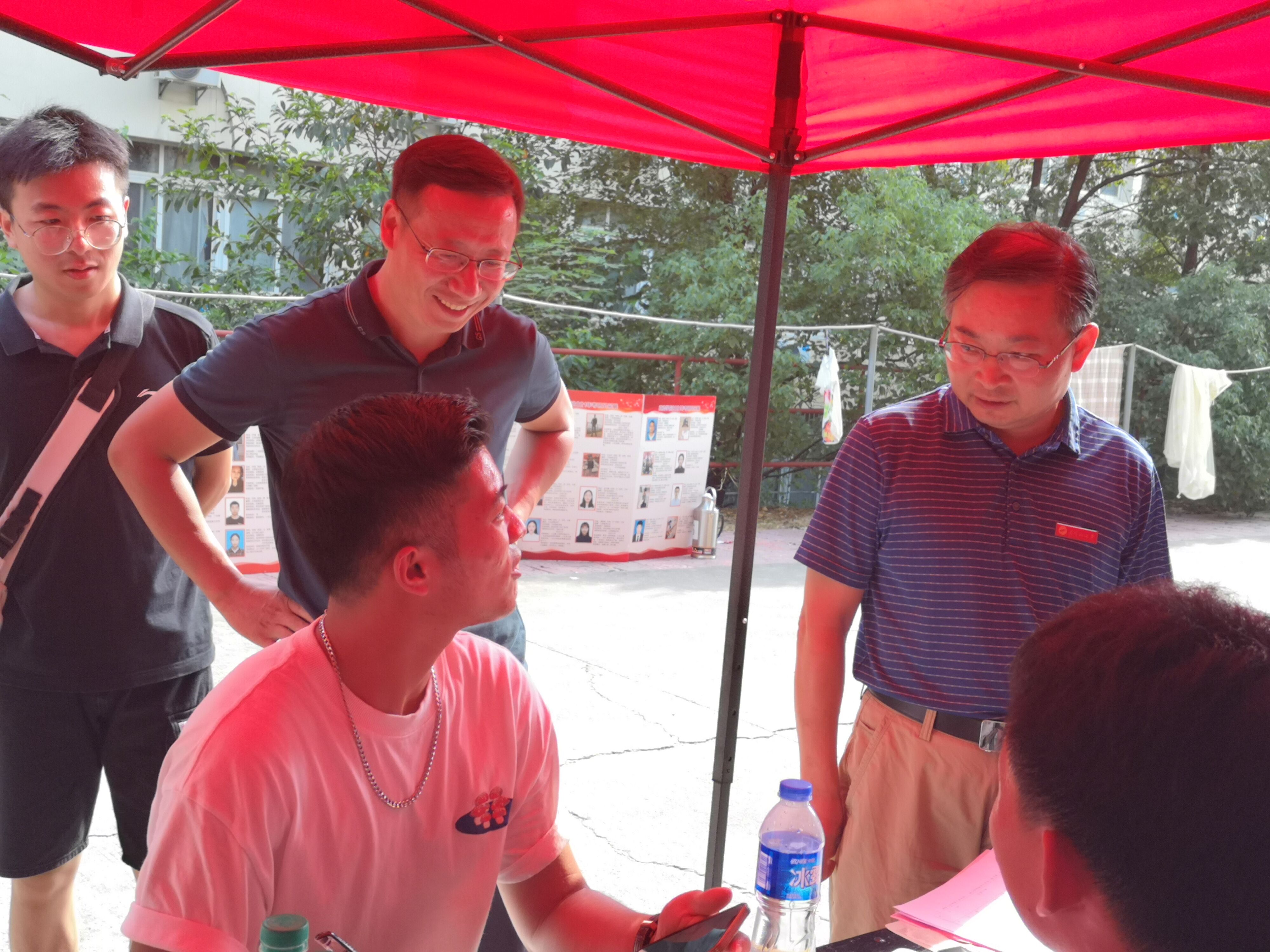 “旅途辛苦啦!都还顺利吧?”在我院学生宿舍19栋迎新报到点,曾校长细心察看了报到流程,并与现场的新生们进行交流。当身着政法学院标识的“红马甲”志愿者一一接过新生的行李,领着新生完成所有的报到流程后,校长亲切的慰问志愿者:“你们辛苦啦!”感谢大家付出的辛勤劳动,并对在炎热天气下工作现场其他服务人员提出表扬。