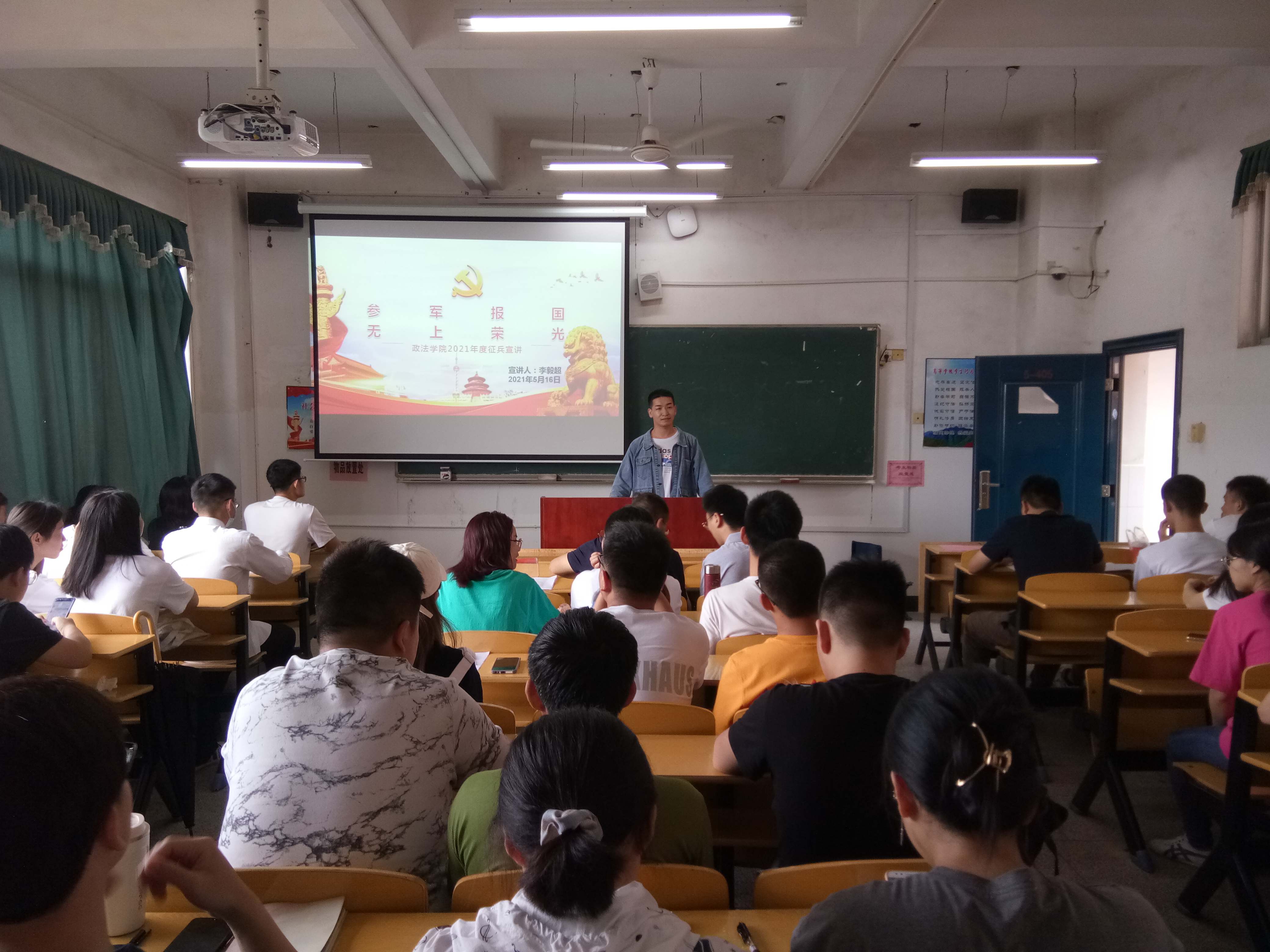为使我院学生更加全面地了解应征入伍的相关条件和政策,鼓励学生积极参与应征入伍,提高兵员征集质量,推进国防和军队现代化建设,5月16日,政法学院举办“我为群众办实事”系列之征兵宣讲活动,政法学院党委书记吴高平、党支部书记肖文海和毕业生党员以及有当兵意向的部分同学参加了本次活动。