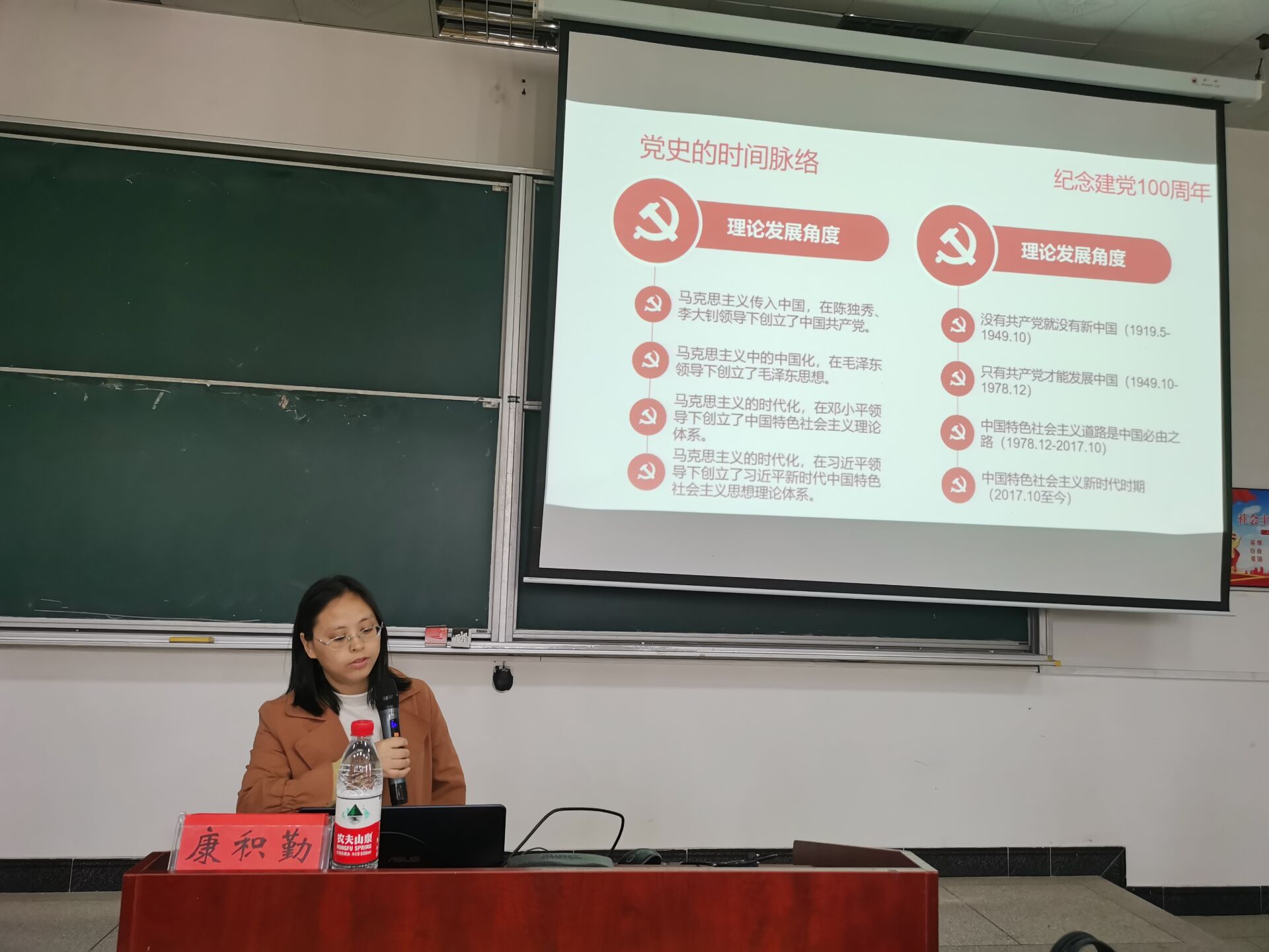 4月17日下午3时,我院党委在5栋407室举行《学党史 悟党性 跟党走——学习党的百年光辉历程》的专题辅导讲座。本次培训由政法学院党委专职组织员康积勤主讲,培训班学员参加此次辅导。