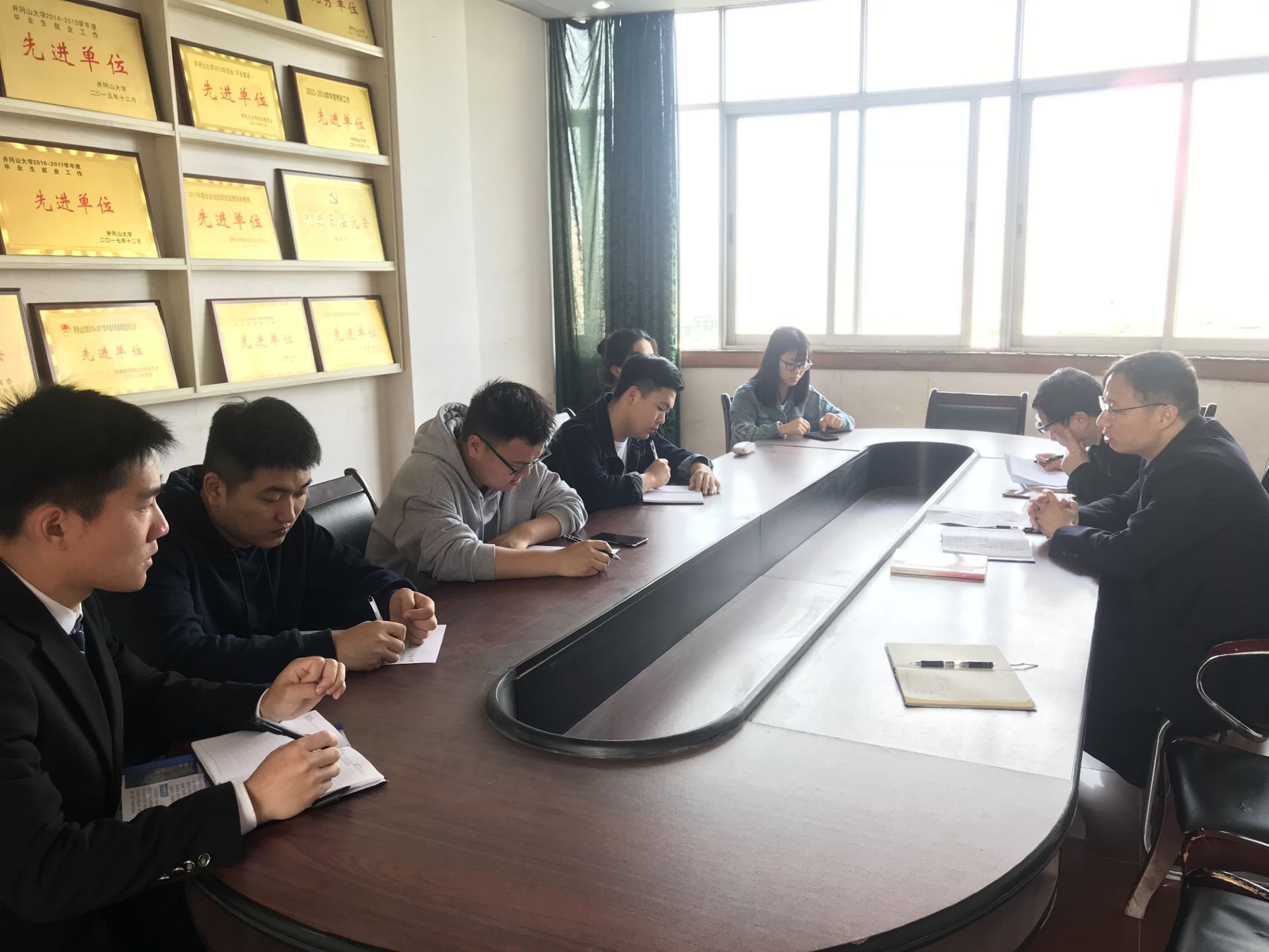 了解毕业学生思想动态,关注毕业学生心理,推动毕业生就业,4月21日上午9时,我院于5栋5楼会议室召开毕业班班长、团支书会议。政法学院党委书记吴高平,副院长欧阳晓安,团委书记、学生科科长杨婷出席会议,各毕业班主要学生干部参加会议。