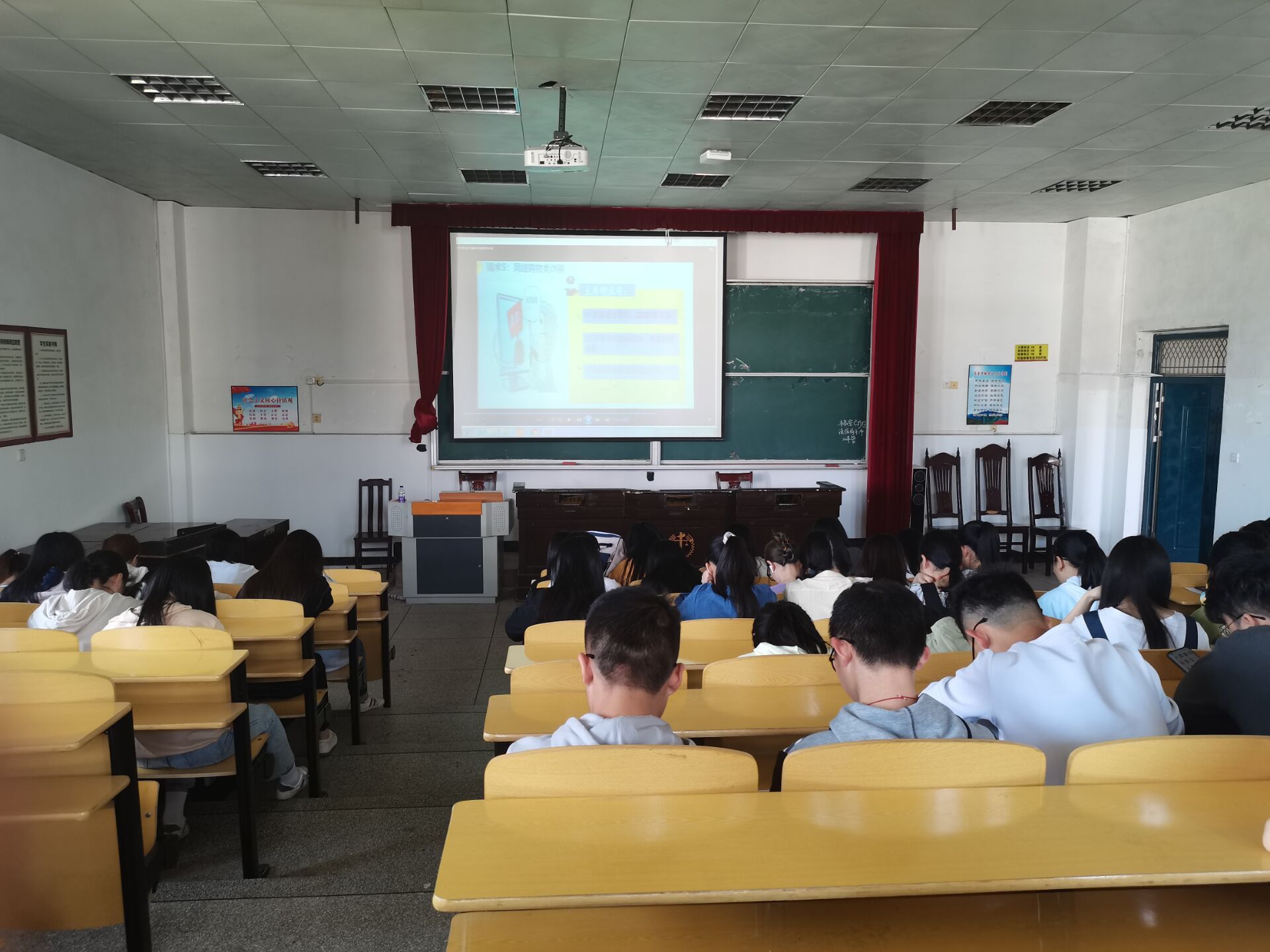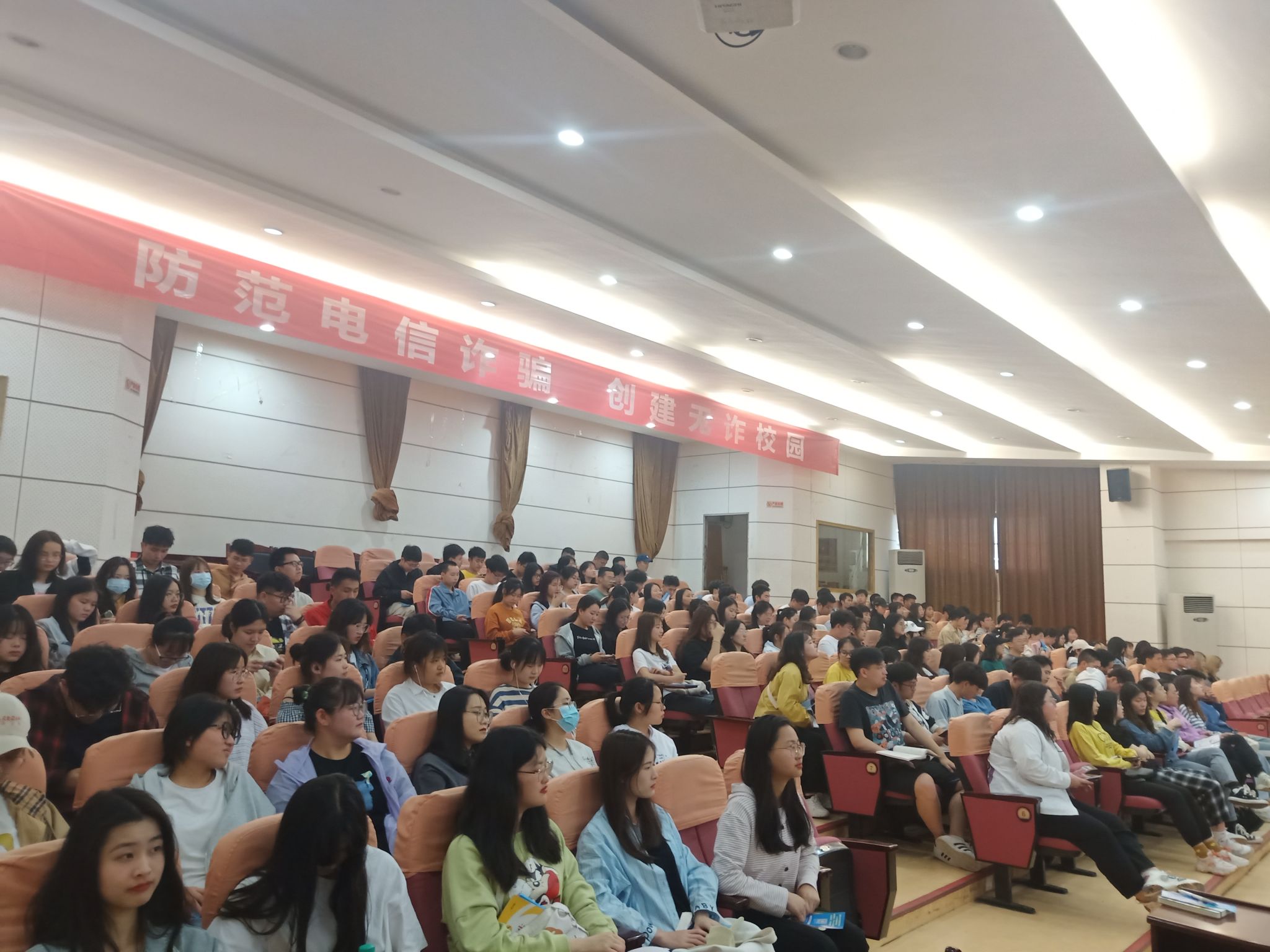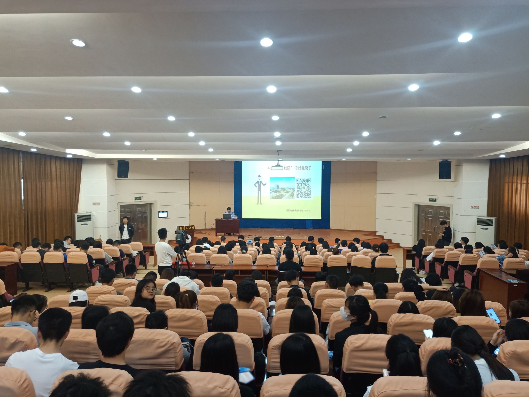 为提高政法学院学生识诈防诈反诈意识,保障其师生人身财产安全。4月29日下午2时30分,学校邀请青原区公安分局反诈中心主任刘涛警官,为学生作了以”创建无诈校园,守好钱袋子”为主题的宣传讲座,我院19级、20级班级到场参加,4月30日,我院其他班级于5栋408室观看录播。