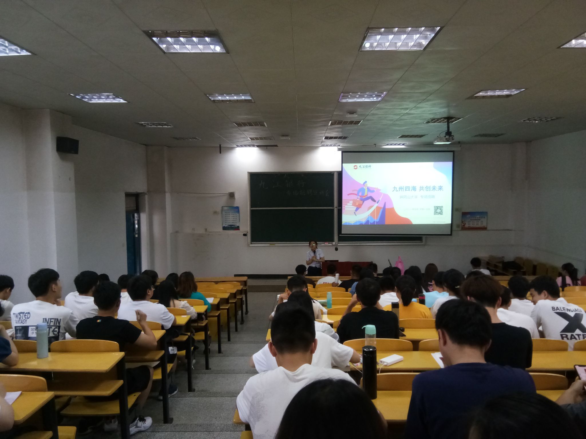 会上,招聘工作人员围绕“九银成长、九银校招、互动答疑”三大主题,为同学们讲解了公司的发展概况、企业文化、工作岗位以及薪酬福利待遇等。同时还就员工发展问题详细介绍了培训计划,让同学们对九江银行有更多的了解。随后,同学们就实习生转正、实习地点等方面进行提问,招聘工作人员做出仔细、专业、亲切的答复,帮助与会同学做好规划自身职业发展。