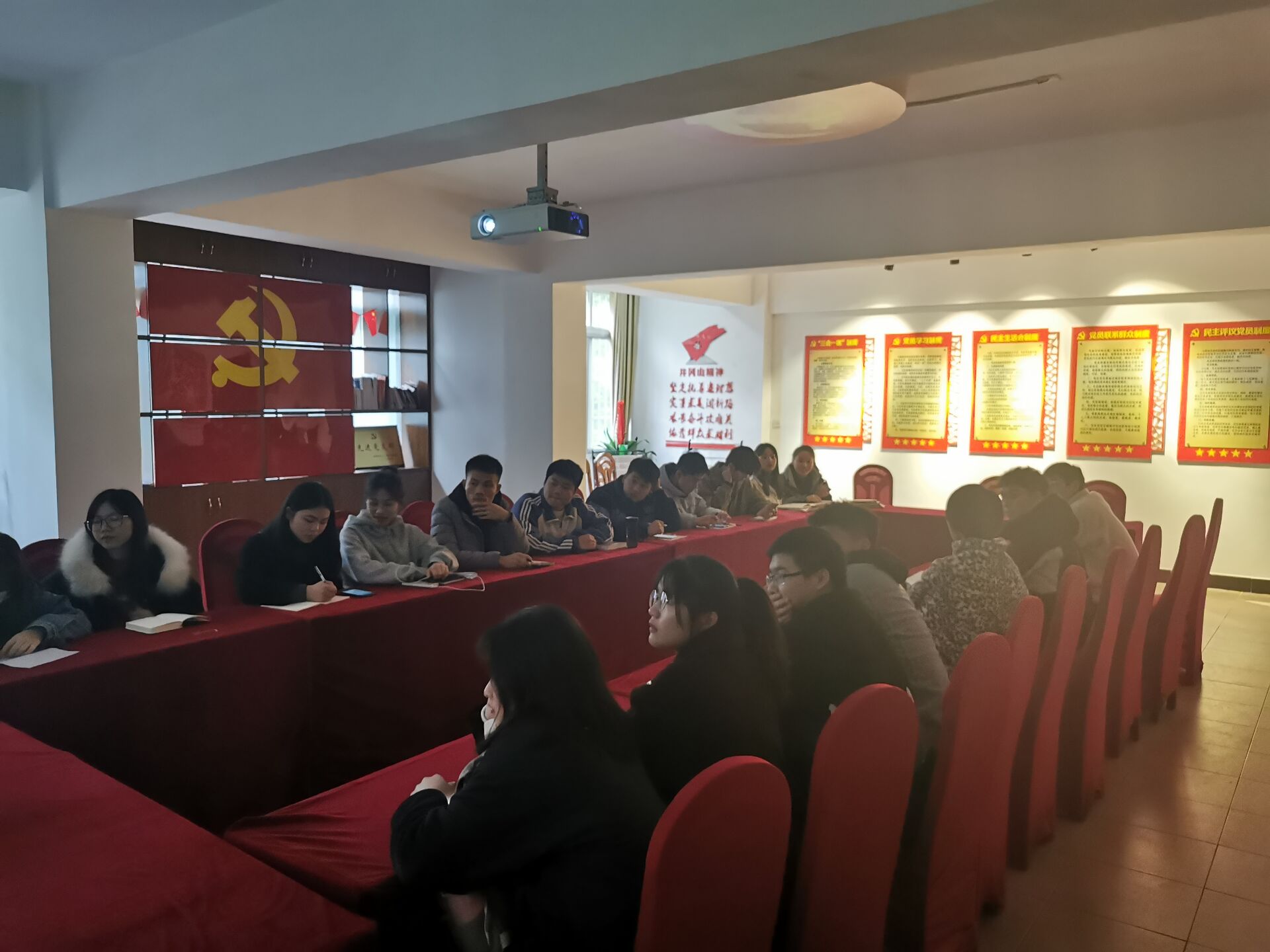 2021年3月6日下午,为深入学习戍边英雄们的爱国忠诚精神,增强全体党员居安思危意识和爱国情怀,政法学院学生第一党支部全体党员在19栋会议室组织观看学习《喀喇昆仑写忠诚》。