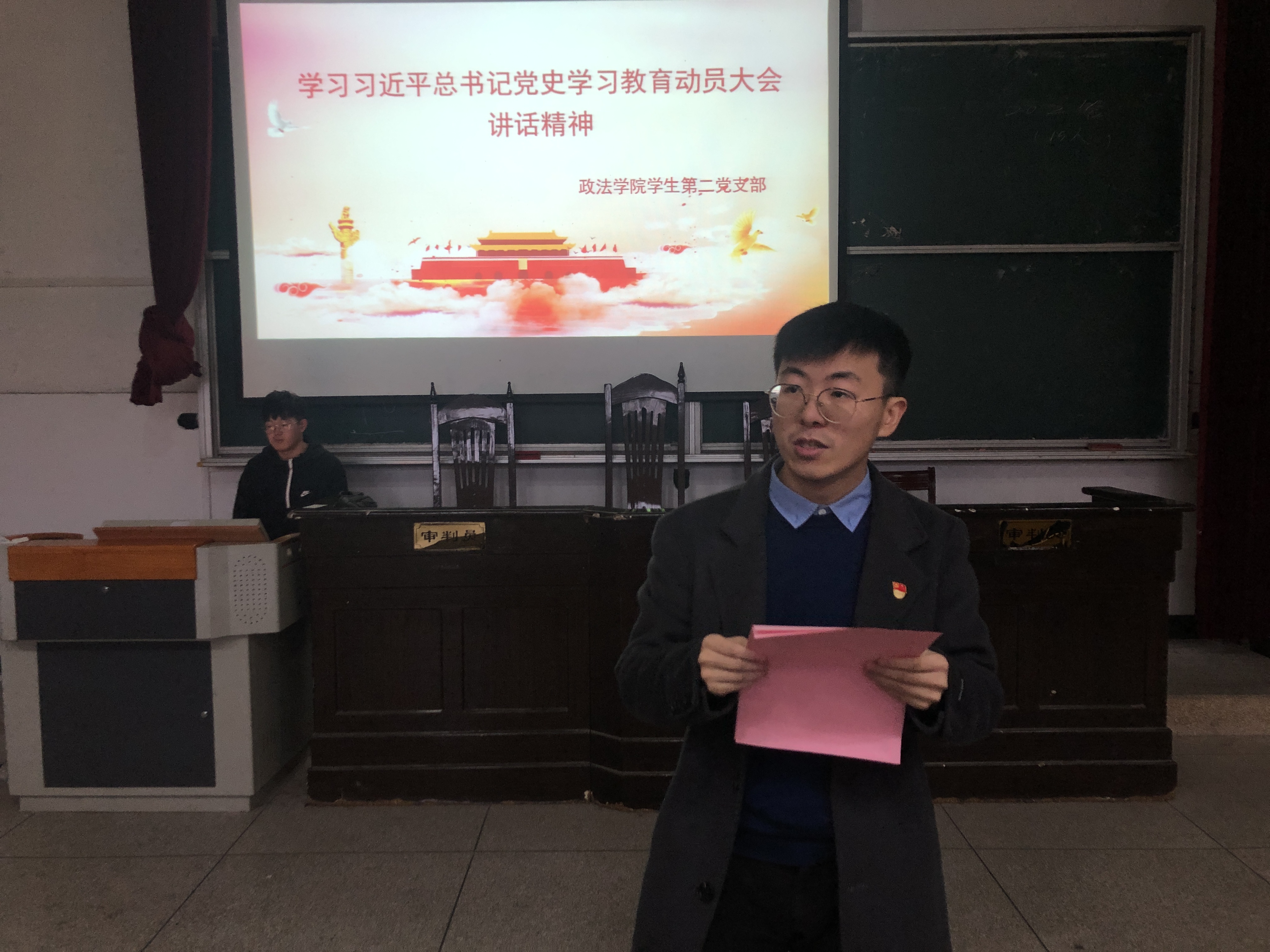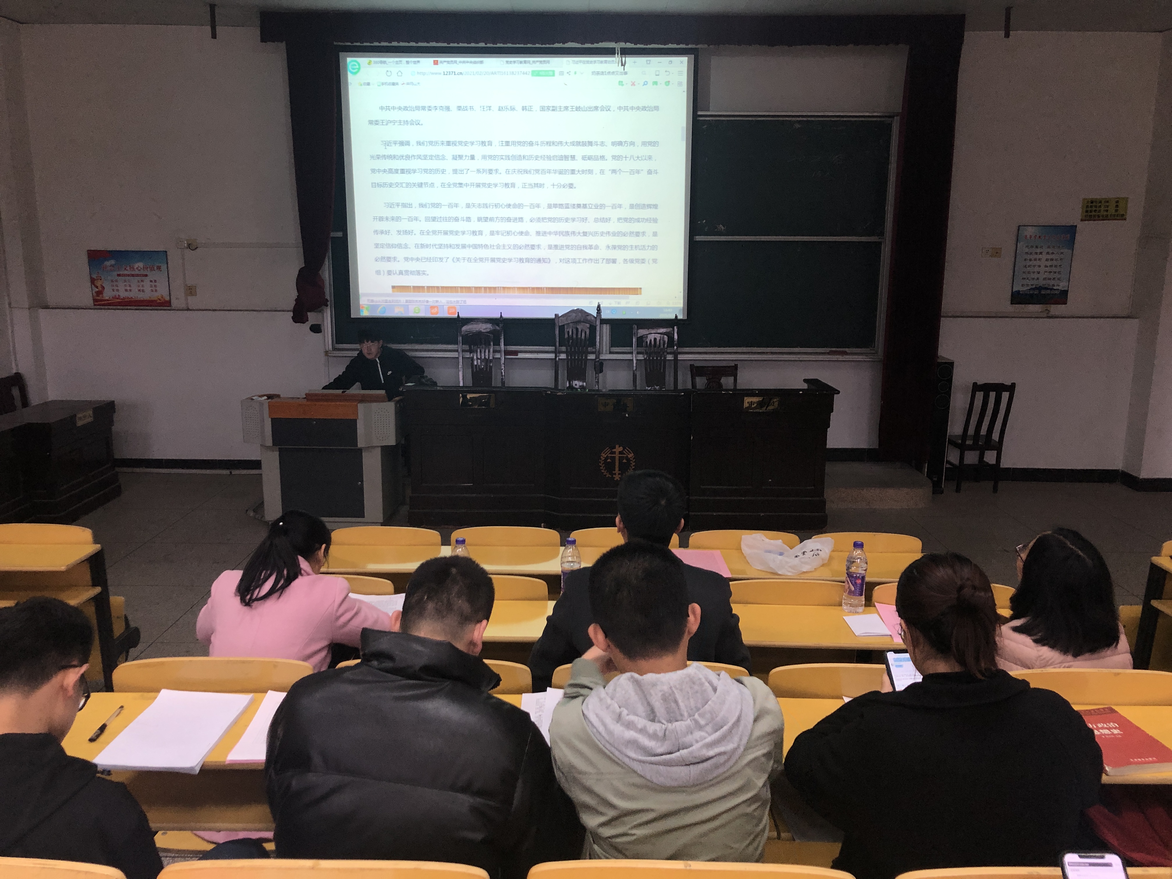 为了认真贯彻落实中央、省委的决策部署,开展好党史学习教育,有力推动支部党的建设高质量,切实提高支部党员的政治素养。2021年3月20日下午4时,政法学院学生第二党支部组织支部党员于5栋408教室,开展学习贯彻习近平总书记在党史学习教育动员大会上的重要讲话精神座谈会,政法学院学生第二党支部书记肖文海,支部组织委员,支部宣传委员杨洪芹出席,支部党员、预备党员当场参与本次座谈会。