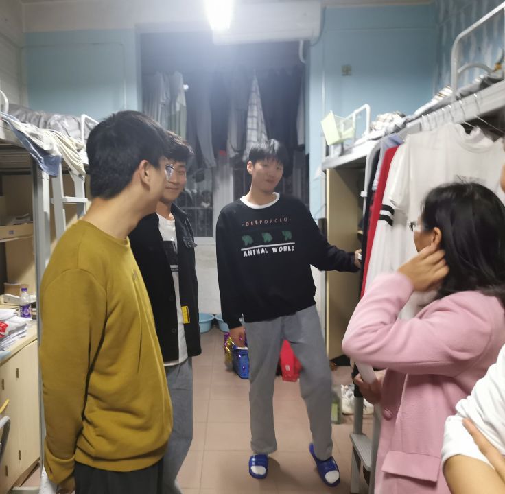 在走访寝室过程中,他们着重查看了党员、入党积极分子的寝室,亲切关怀学生党员的日常生活,寝室内务整洁卫生,对此老师们赞许学生党员生活习惯良好,起到了较好的先锋模范、带头作用。更在交谈中老师们积极的为学生解答了部分对于专业学习和未来职业道路选择上的疑问,并希望考研的同学继续保持良好学风,营造浓厚的学习氛围。