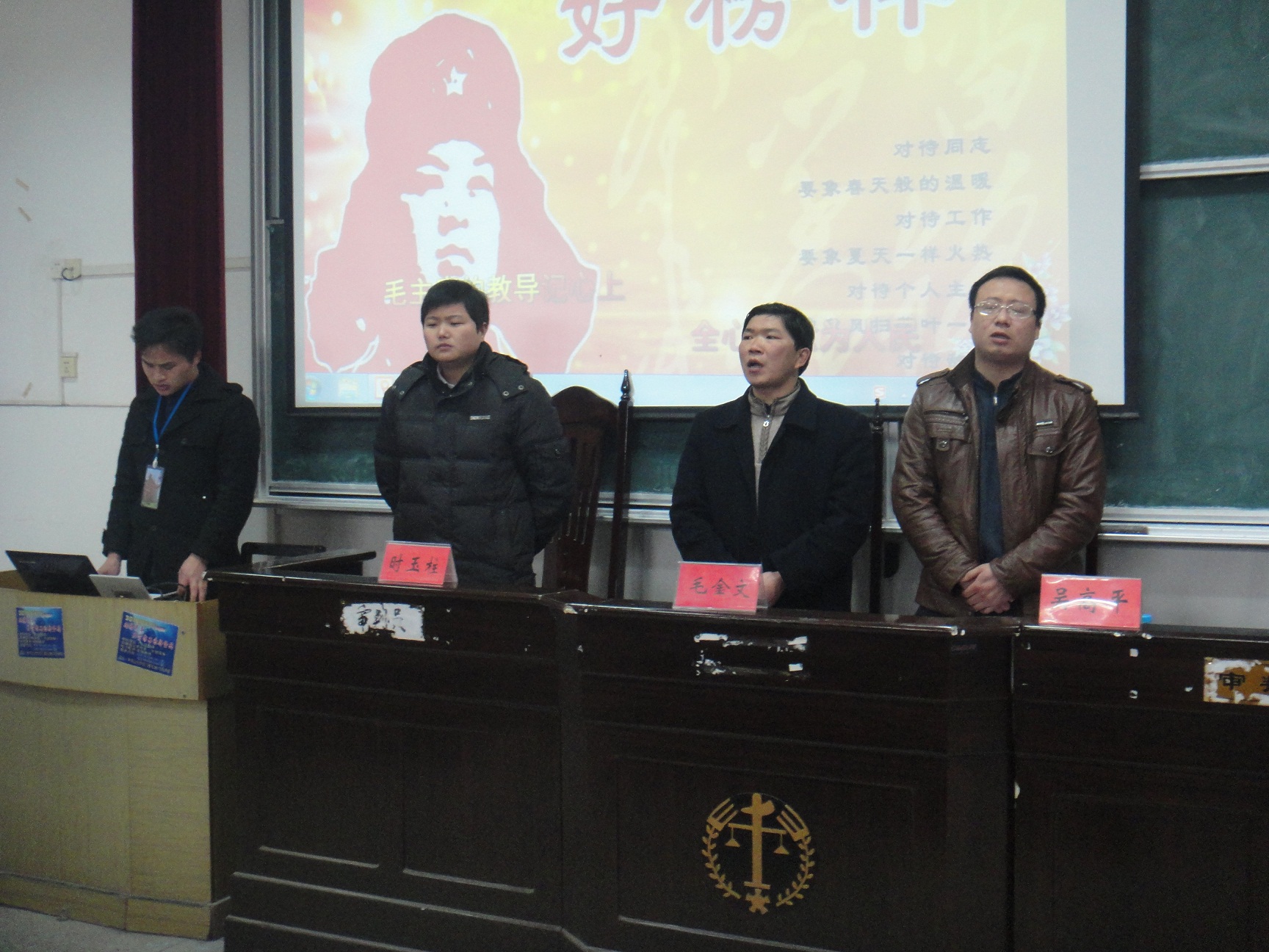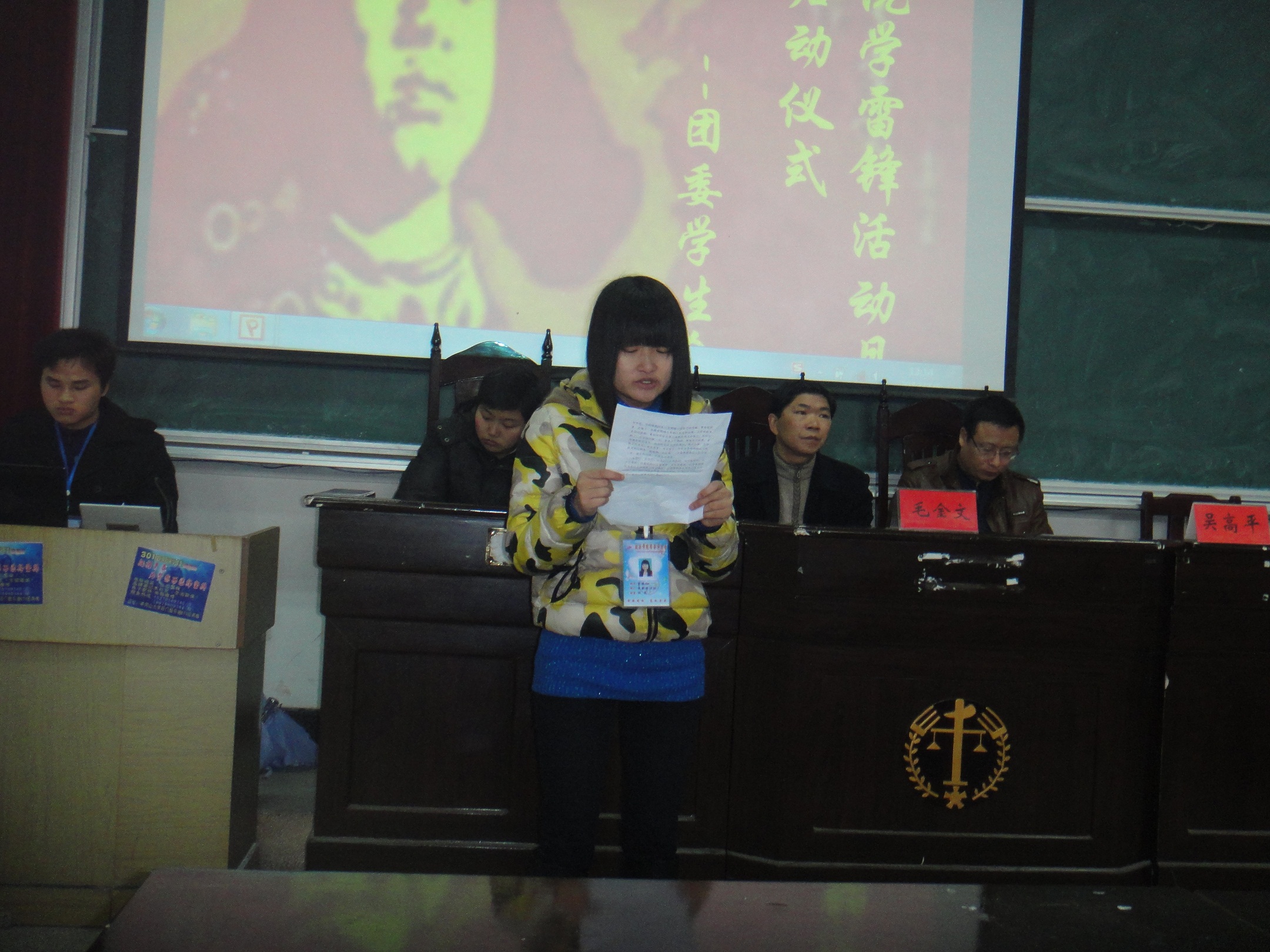 为纪念雷锋同志逝世50周年,大力学习、弘扬和践行雷锋精神,进一步推动公民道德建设和社会主义核心价值体系建设深入开展,3月5日中午,政法学院在5栋408室顺利举行了学雷锋活动启动仪式。启动仪式由院团委副书记邓杨飞主持。出席此次活动的有院党委副书记毛金文、团委书记兼学生科科长吴高平、学生科副科长时玉柱,全体院干及非毕业班团支部成员到场参加了本次启动仪式。