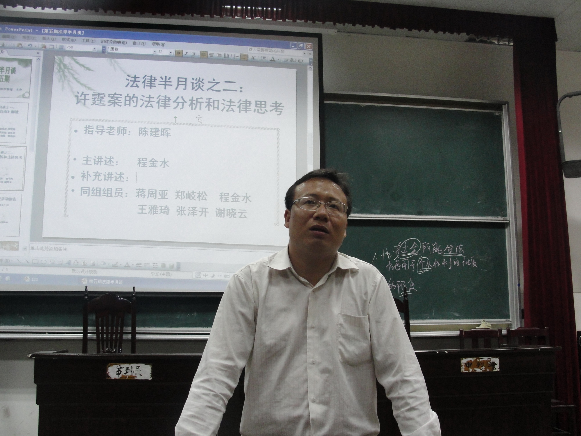 本次法律半月谈活动共分两场报告会。第一场报告会由王文峰同学代表本组同学为我们解读了由英国著名哲学家和经济学家约翰·斯图亚特·密尔所著的《论自由》一书。接着由该组成员尚发超和谭成香同学结合具体的实例说明密尔的观点。第二场报告会首先由程金水同学对许霆案中的法律问题进行分析,接着由该组成员郑岐松同学就媒体与司法的关系进行补充阐述。报告会后,同学们纷纷就报告内容发表自己的看法,并与报告人展开了激烈的讨论。