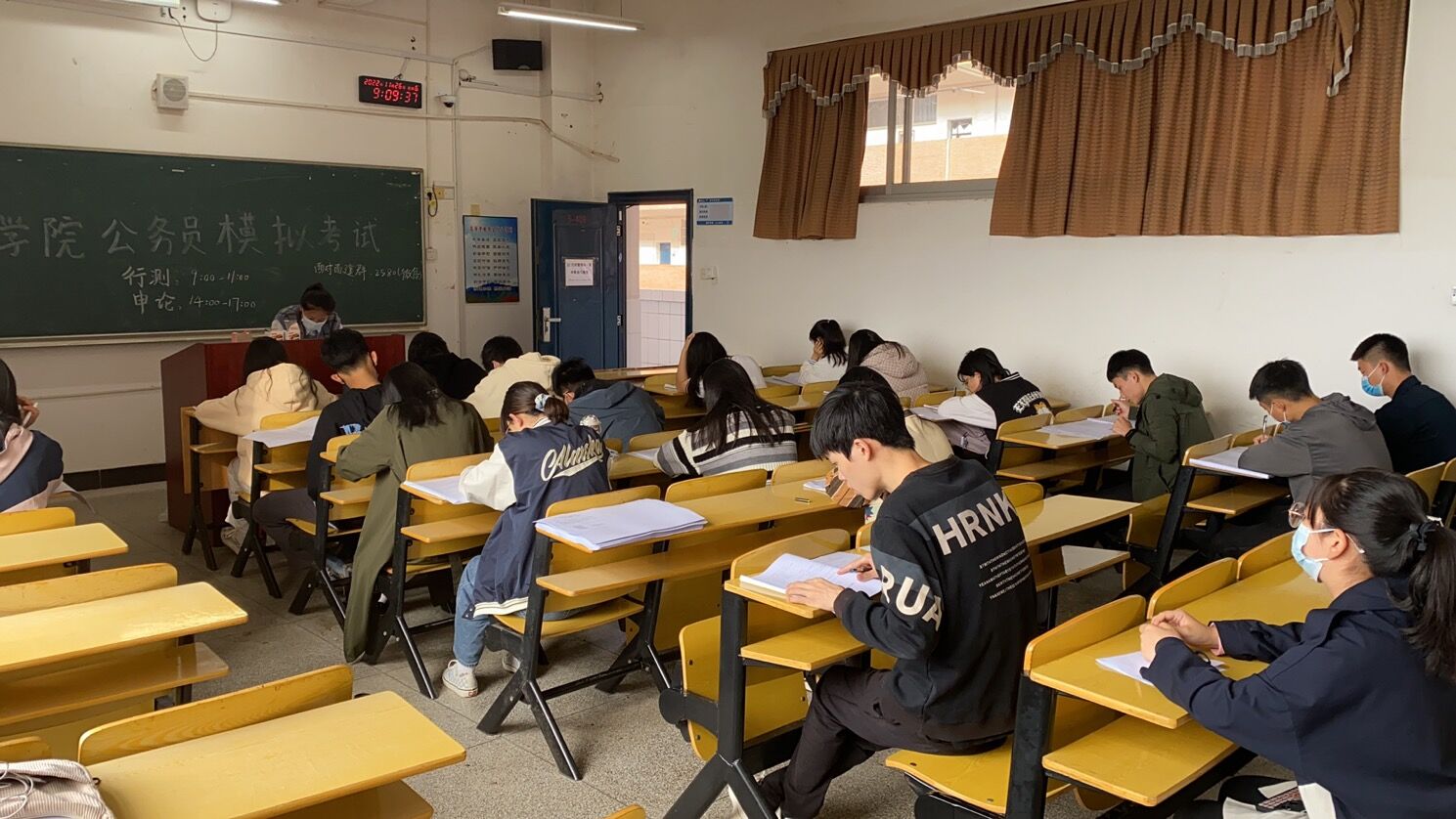 距离2023年国家公务员考试仅剩一周时间,为增强考公学子对做题节奏、时间分配的把握,使其提前感受考试氛围、锻炼心态,政法学院联合华图教育,于11月26日上午9时和下午2时,在5栋409举行国家公务员模拟考试。