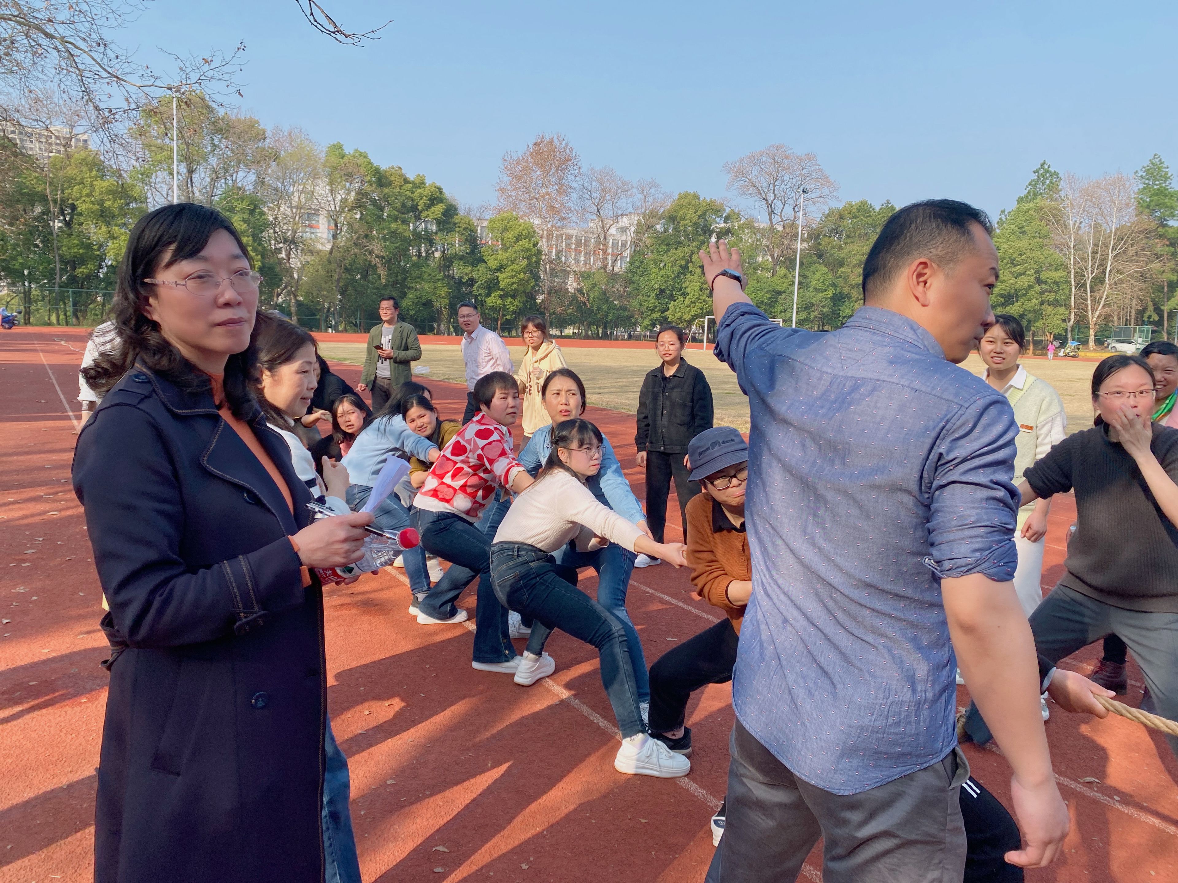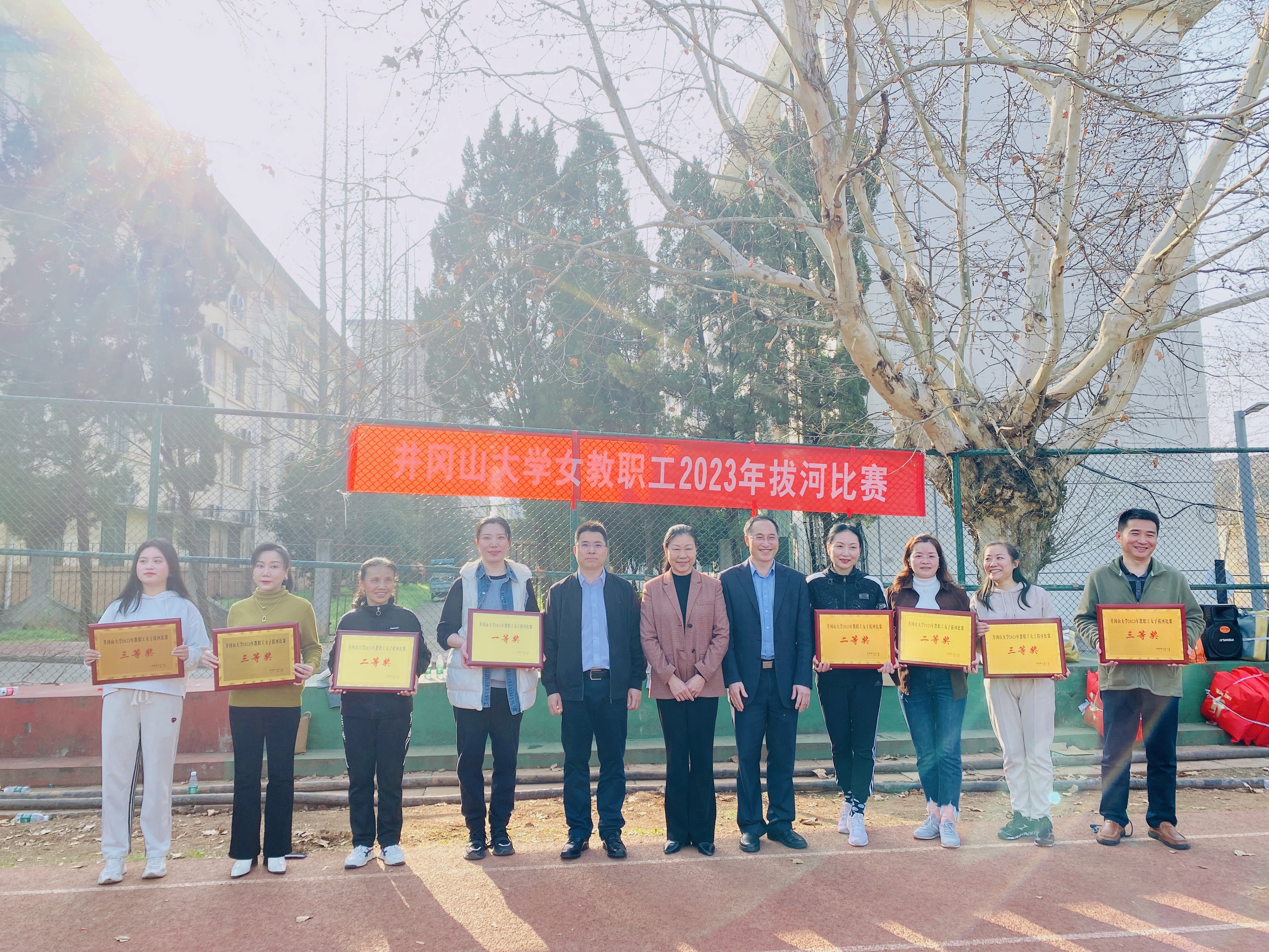 为营造积极健康、丰富多彩的校园文化氛围,活跃教职工的业余文体生活。井冈山大学于3月9日下午3时,在井冈山大学南区的田径场上,举行了“井冈山大学女教职工2023年拔河比赛”,我院17位女教职工参与了此次比赛,为政法学院争光添彩。