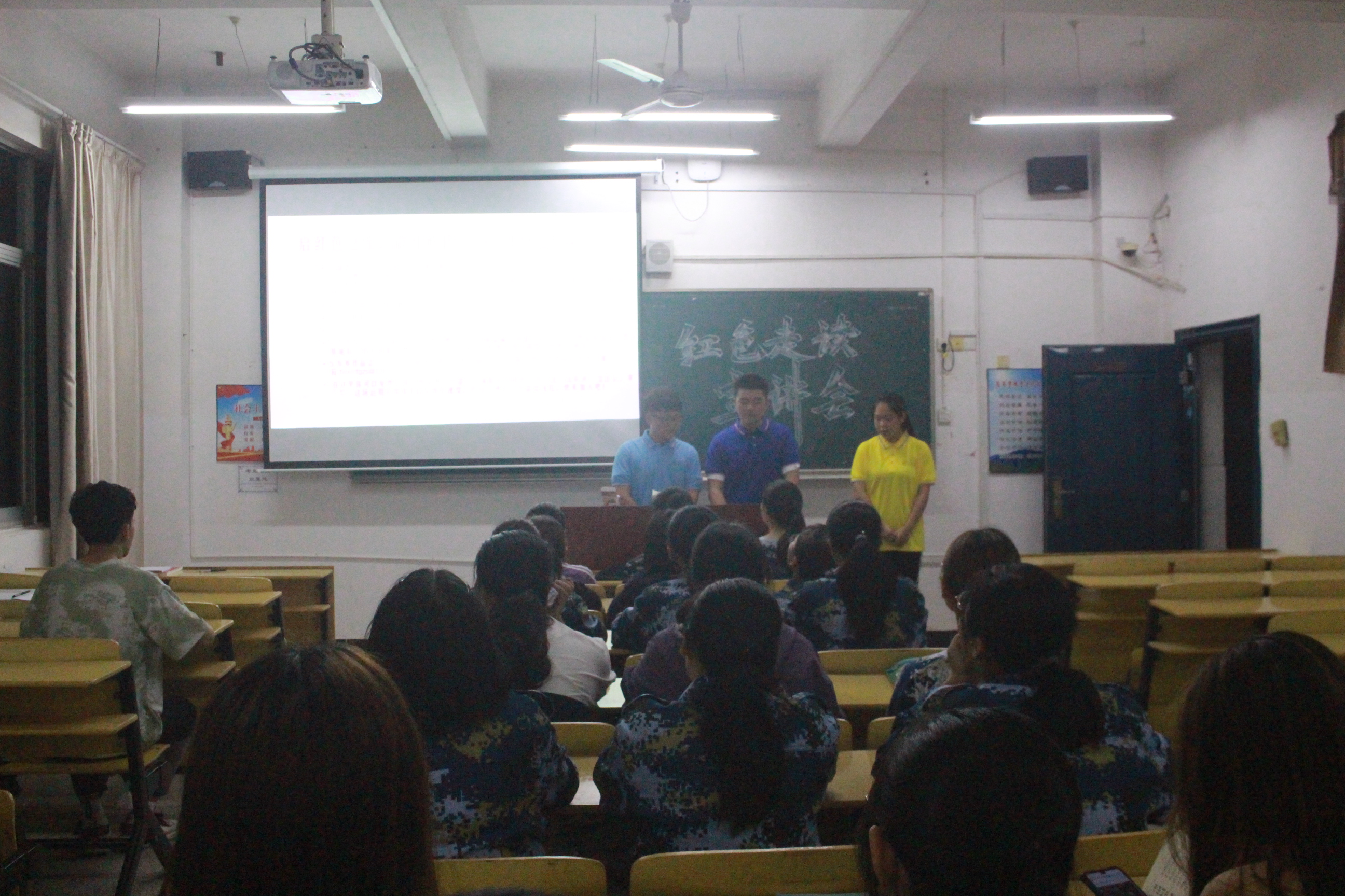 走读团成员身着统一的团队队服,向新生细致讲述红色走读的含义及重要性,结合自身实地走读的经历,分享在其中感受到的红色文化历史和红色革命情怀,随后向同学们展示了我院实地红色走读的作品集。他们鼓励新生积极参加红色走读活动,用自己的实际行动传承红色基因。宣讲接近尾声,同学们深受鼓舞,表示想要加入红色之旅,做红色文化的传播者、红色基因的传承者、红色精神的践行者。