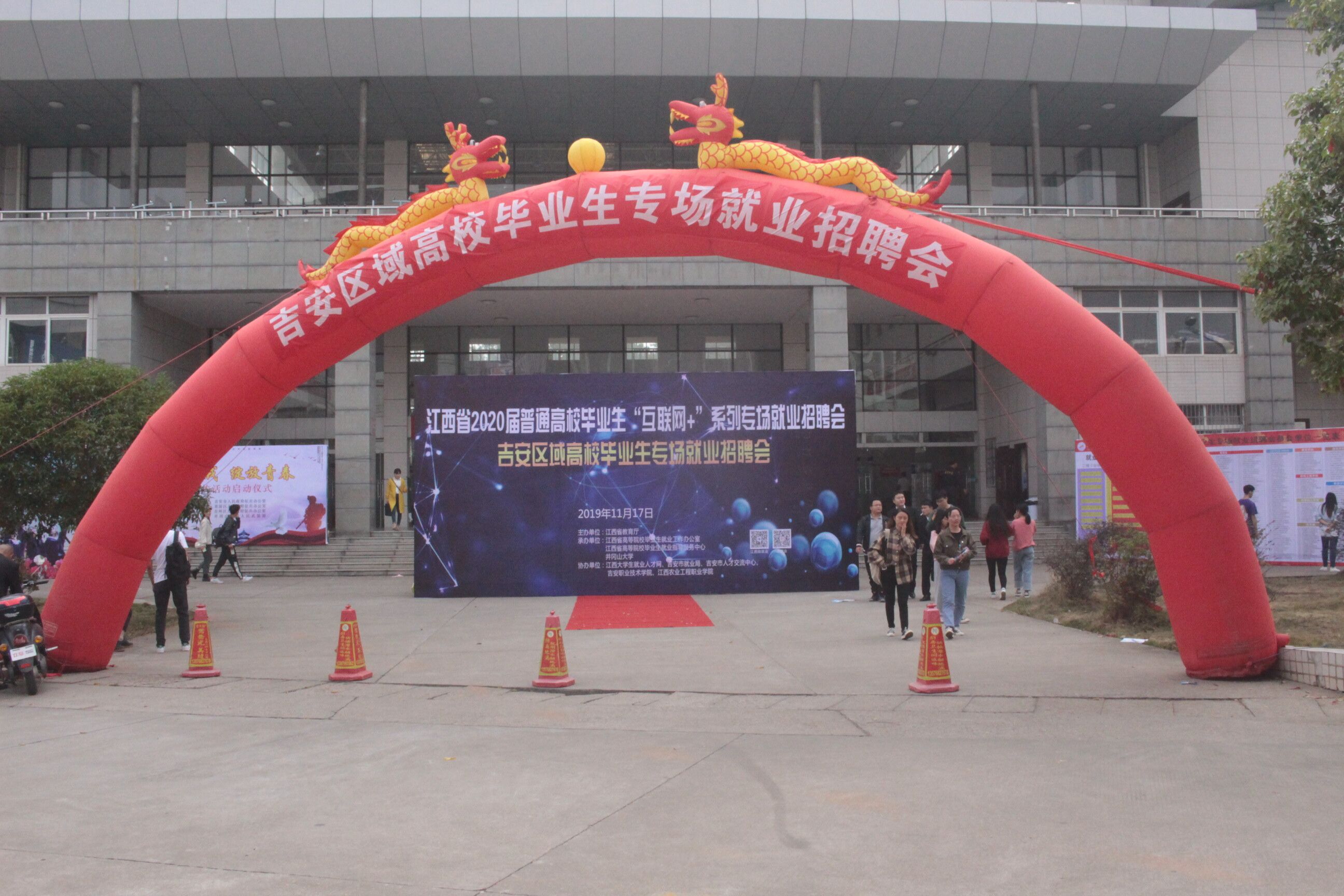 为更好地拓宽大学生就业渠道,提高大学生就业成功率,11月17日上午9时,我校于体育训练馆举行2020届普通高校毕业生“互联网+”系列专场就业招聘会,我院党委书记毛金文,党委副书记吴高平,团委副书记、学生科副科长杨婷,18级辅导员肖文海亲临会场指导。
