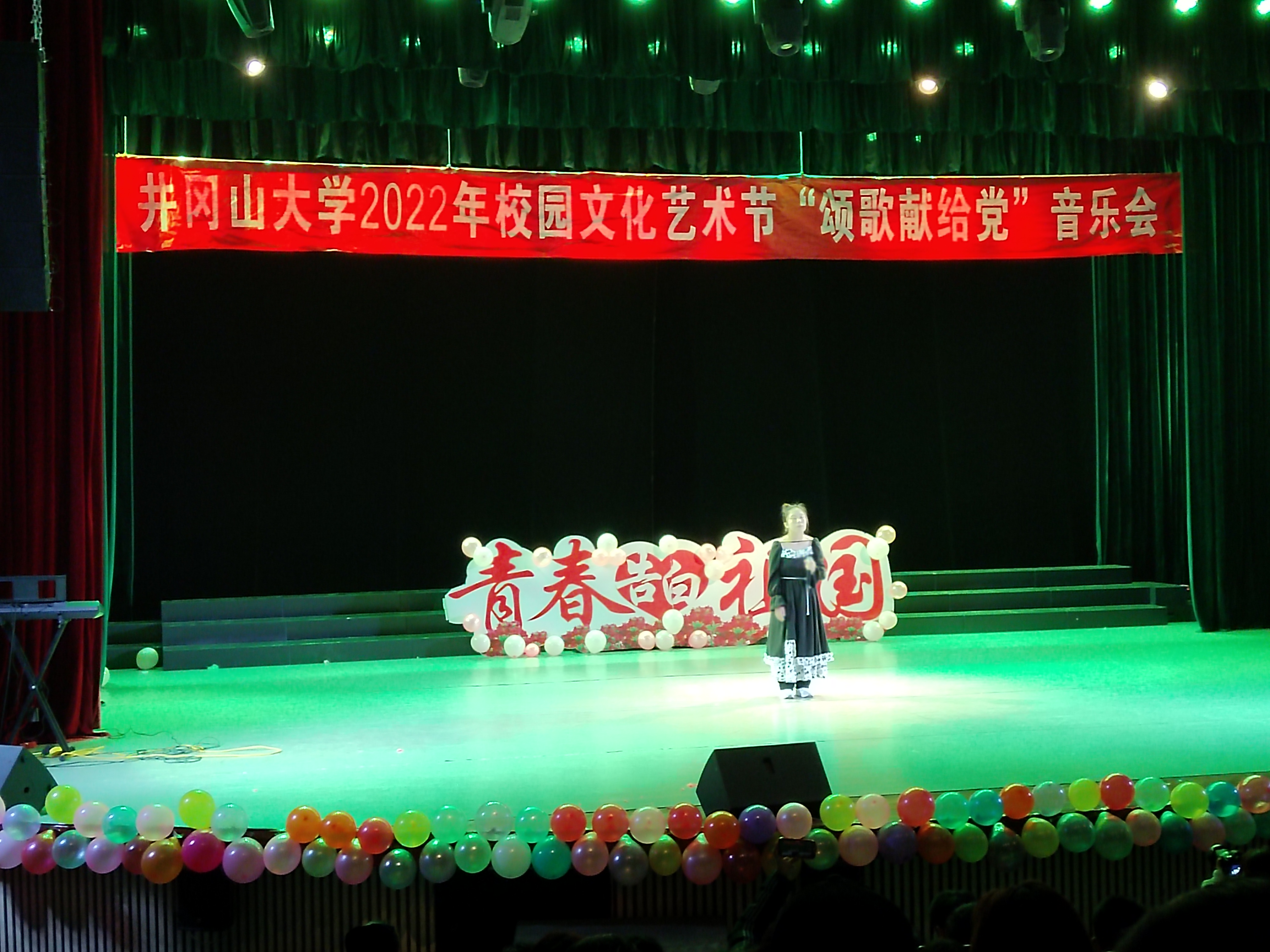 为热烈庆祝党的二十大胜利召开,充分发挥校园文化在引导青年学生践行社会主义核心价值观中的积极作用,引领井大青年积极传承和弘扬井冈山精神,12月4日晚7时整,井冈山大学校园文化艺术节之“艺心向党 ,不忘初心”音乐会于8栋音乐厅举行。