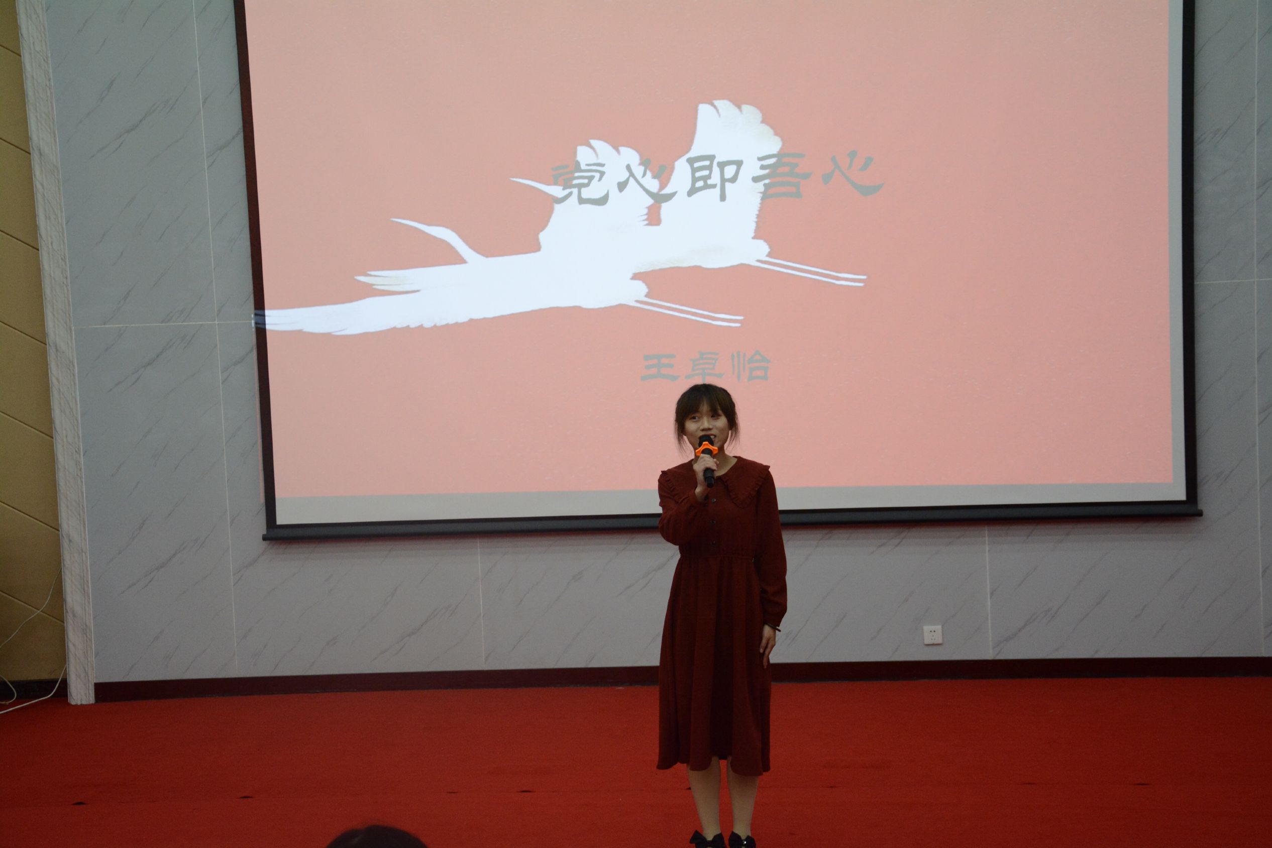 比赛伊始,主持人致开幕词,随后,每一位演讲者都饱含热情,昂首挺胸走上舞台,分别讲述了自己对新时代青年作为的独特想法,演讲抒发出各位同学对党的真挚情感,展现新时代学生青年的青春面貌。我院22法学专业本二班的王卓怡同学演讲的题目是《党心即吾心》,她从自身幼时与父亲一起同往延安红色革命根据地的经历讲起,在这段过程中了解到是无数的革命烈士用鲜血与生命换来了来之不易的幸福生活,心中顿生敬意,红色的火种于心中埋下。当她讲道:国家统一、民族复兴的历史车轮滚滚向前,时代的接力棒已传入我们手中,我们将与我国社会主义现代化国家建设新征程同向而行,时代的重任、复兴的梦想将寄托在我们身上,使命在肩,责任重大。”时,不由激动了起来,语气变得高亢,说出了:“党心即是吾心,心之所系,情之所归。”最后,王卓怡同学在本次大学生演讲比赛中荣获三等奖。