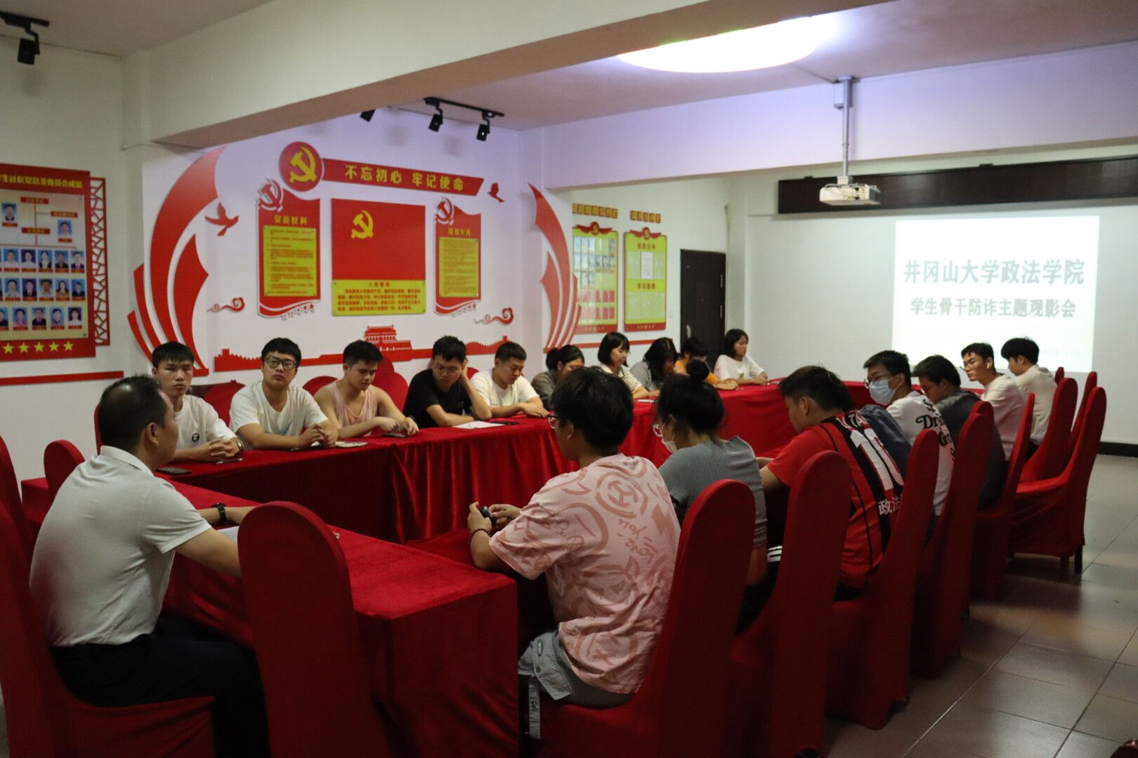 为进一步加大校园防诈骗宣传力度,增强学生安全防范意识和法制观念,9月27日晚6时30分,政法学院于19栋党员活动室召开防诈骗安全教育主题会议,会议由党委副书记喻聪主持,政法学院各部门负责人、各班班长到场参加。