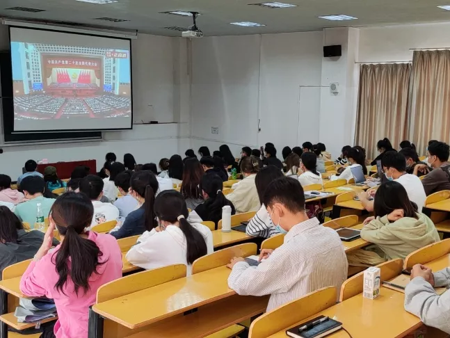 10月16日上午10时,中国共产党第二十次全国代表大会在北京隆重开幕。政法学院党委组织师生在第五教学楼401、407教室,第十教学楼A011教室等四个分会场,集中收听收看大会盛况,认真聆听习近平总书记的报告,共同见证这一伟大历史时刻。习近平总书记的报告在全院师生中引起强烈反响。