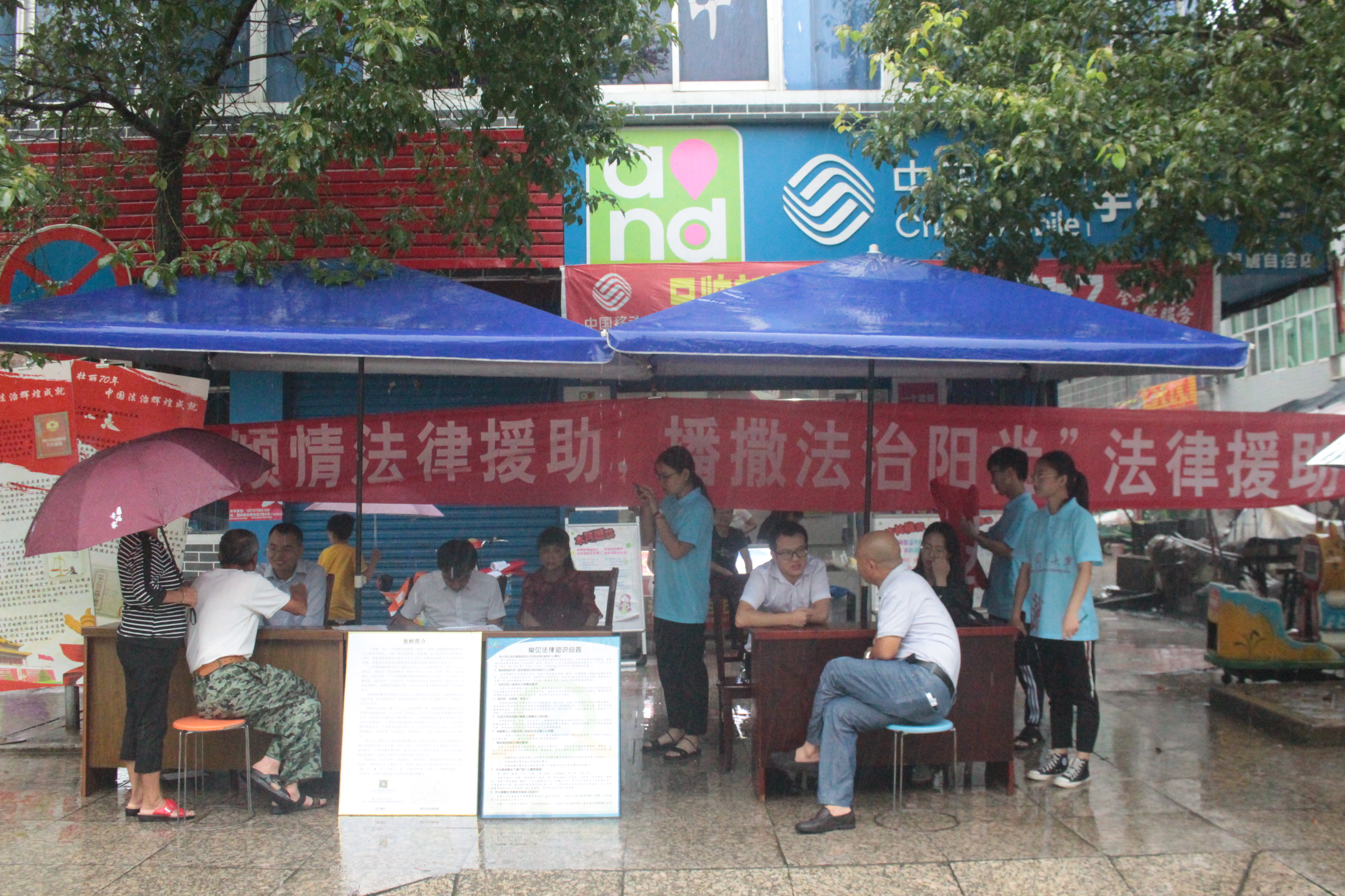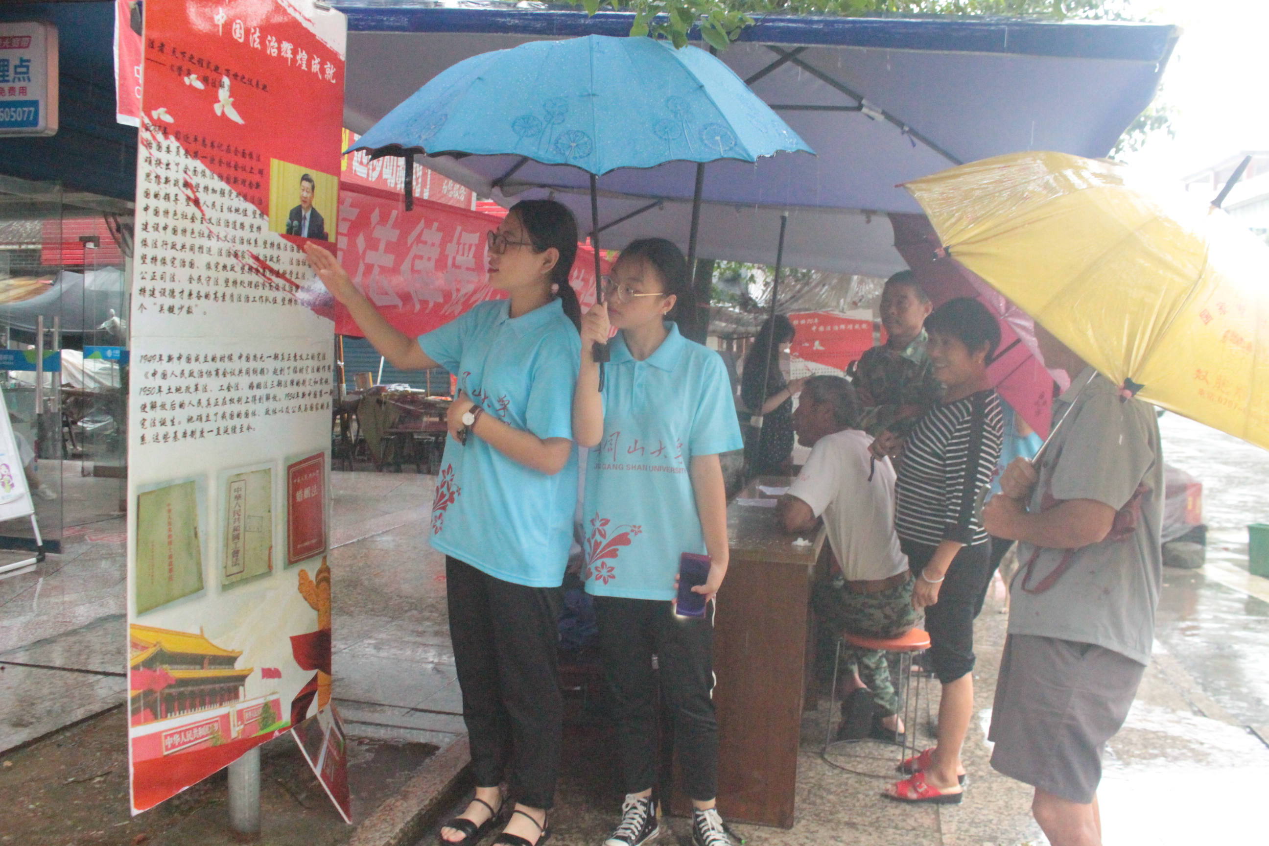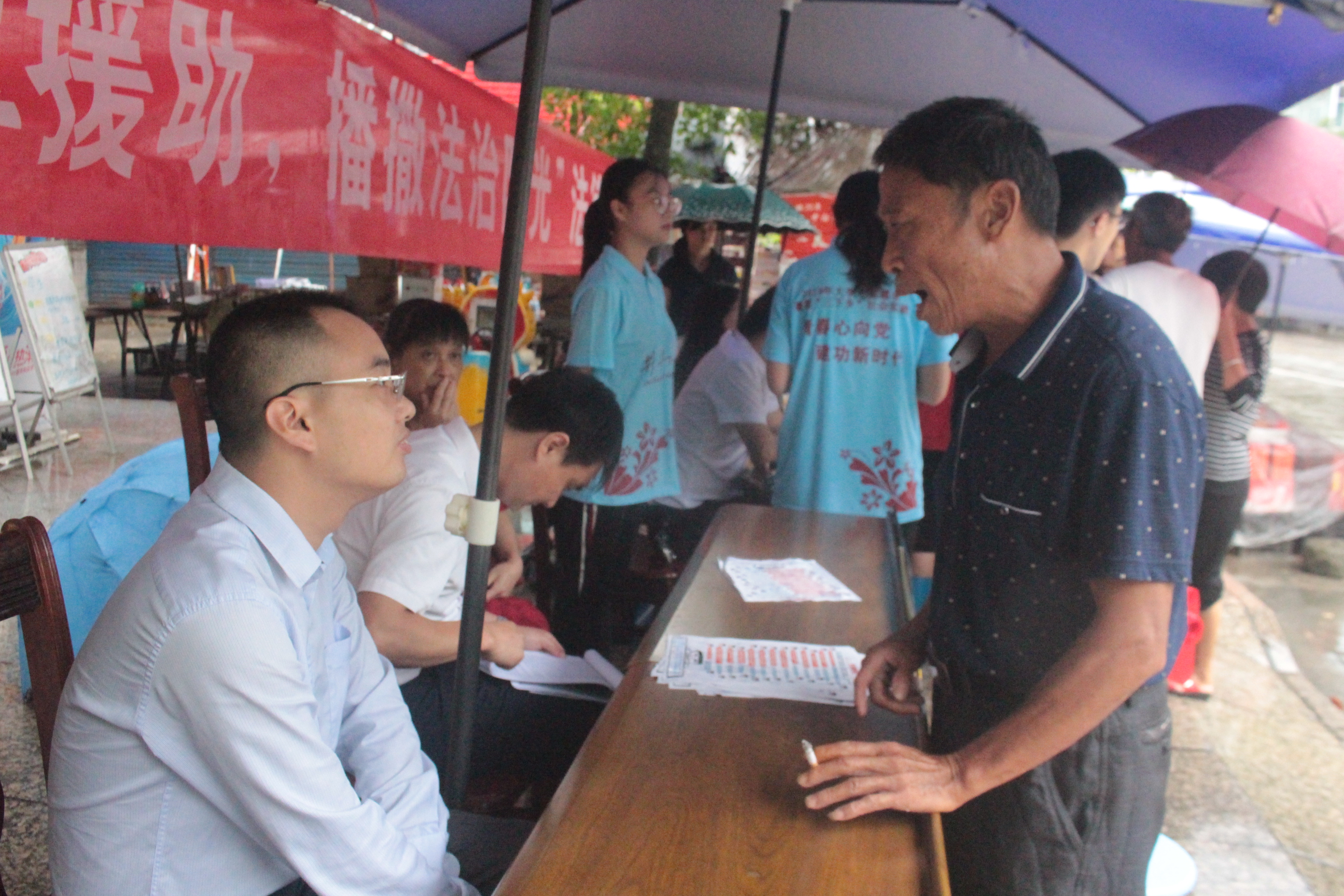 大雨下了一整夜仍未停歇,却丝毫不影响志愿者的热情。一大早,志愿者们打起十二分精神,准备好展板、桌椅以及音响,顺利完成法律援助站点的搭建。之后,一部分志愿者深入乡中,进行问卷调查。一部分志愿者联合江西智桥律师事务所律师,开展法律知识宣传,进行免费法律援助。志愿者耐心地为乡民介绍活动内容和目的,并热情地与乡民交流,指引有法律问题的乡民前往法律援助站点去咨询。律师耐心地解答乡民们关于财产分配、未成年人保护等相关问题,对每一个乡民的疑问都认真思考并做出详细的解答。在得到律师的建议之后,乡民们纷纷感谢律师的帮助,微笑致意。几个小时过去,四位律师已经接待了几十位有法律诉求的乡民并为其答疑解惑,更有几位乡民十分激动地抓住律师的手,连声感谢,并且合影留念。