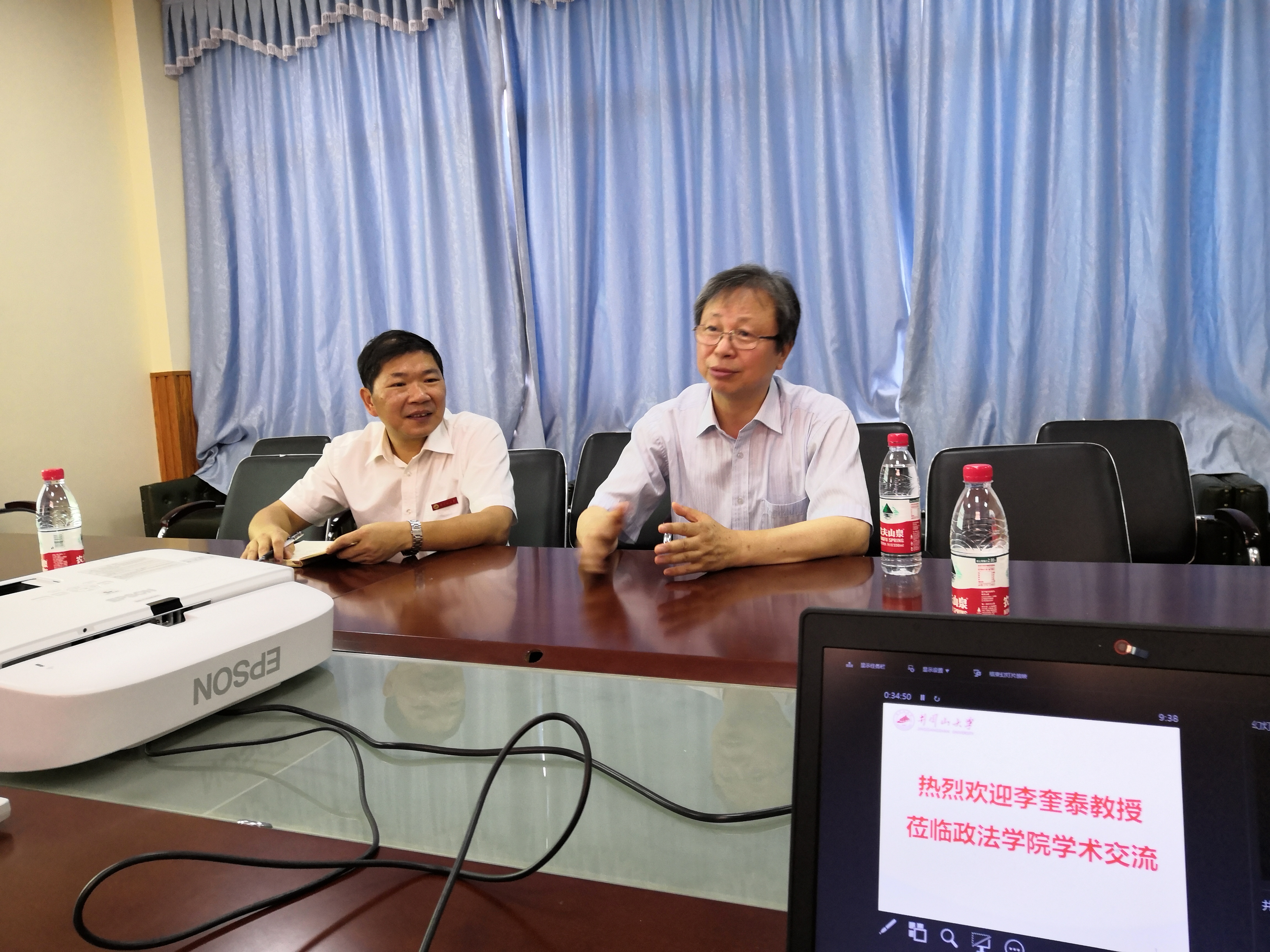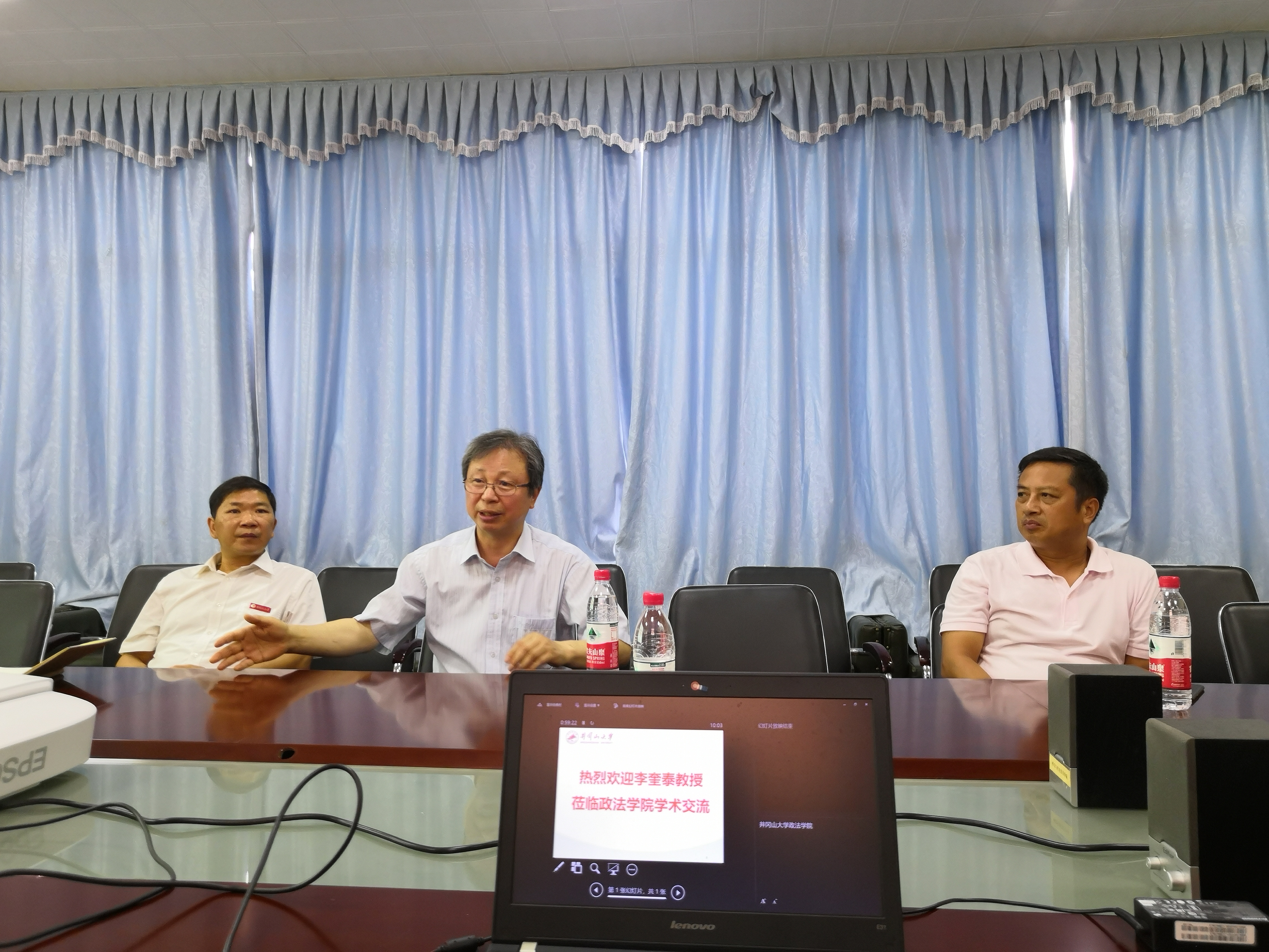 座谈会上,李奎泰教授首先介绍了他治学从教的经历,接着与各位教师进行了长达2个小时的学术交流。期间,熊来平博士、王志华博士、杜德荣博士、古小明博士、毛金文书记、张长厚博士分别就东亚国际局势和日韩关系、朝鲜半岛局势和朝韩关系、韩国发展文化产业的经验、半岛统一问题与两岸统一问题的异同、多党轮流执政的制度对国家外交政策的影响、中美贸易战与日韩贸易摩擦等问题向李奎泰教授请教,李教授对这些问题一一作了详细深入的分析和评论。李教授认为,东亚局势目前因日韩关系的恶化而有所紧张,但经贸合作与民间交流的大势没有改变;朝鲜实施的所谓“新战略路线”并没有对朝韩关系带来实质上的开放性进展,朝鲜问题的解决仍有待中美合作;两岸统一的前景比半岛统一更为明朗;美日韩“铁三角关系”实际上存在诸多不稳定因素,如日韩关系恶化、韩国左派反美亲朝政府的掌权等;国际社会的无政府状态使得各国背离国际法比改变国内法容易得多。李教授对这些国际关系问题的评析,展现出他丰厚的学养和广博的国际视野。现场交流讨论的气氛非常活跃。