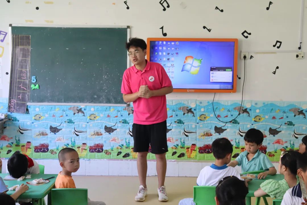 实践队员来到映山红幼儿园二楼开始布置场地,并将三个游戏分工给具体负责队员。小朋友们到齐后,由队长向大家介绍活动纪律,在小朋友们完成分组后活动正式开始了。本次趣味小游戏共分为“天气预报”、“革命精神代代相传”和“破冰行动”。小朋友们兴致勃勃,我们也耐心讲解游戏的背景、意义以及游戏规则,之后便引导迫不及待的小朋友们开始游戏。游戏过程中,小朋友们听从队长指挥,一个个精力充沛,玩得不亦乐乎。