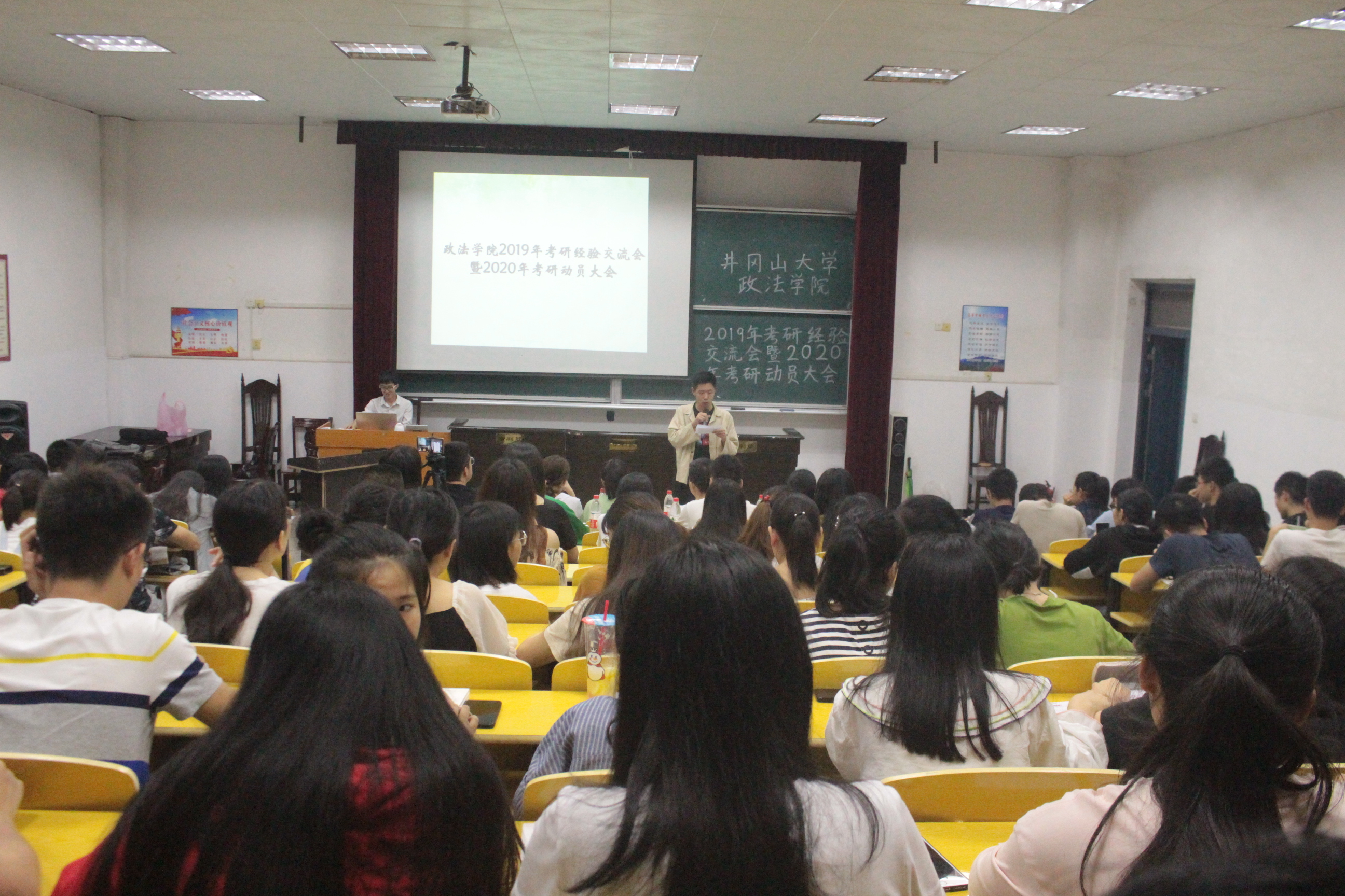 考研就如同人生的第二次高考,是人生的一个重要转折点,为提高学生对考研知识和经验的了解,为学院正在备考的同学们加油鼓劲,5月12日晚18时30分,我院于五栋408室开展了2019年考研经验交流会暨2020年考研动员大会,政法学院党委副书记吴高平、18级辅导员肖文海出席本次活动。 本次交流会邀请了15级考研中成绩优异、经验丰富的学生邓磊、雷成鹏、孙赫琪、裴琳娜、陈惺惺、李静分享考研经验。交流会中,他们首先以ppt的形式进行了一个简单的自我介绍,让同学们对他们有初步的了解。邓磊和裴琳娜就考研资料的选择与方向等问题做了详细讲解,他们向大家推荐了几套资料和微信公众号,并鼓励大家调整心态,沉着应考。雷成鹏和陈惺惺及李静以自己的切身经历向大家介绍了考研的经验,他们从考研资料的选择、考研择校的重要性以及考研需坚持到底的心态几个方面分析了考研的准备过程。孙赫琪则通过分析自己考研985院校的失败和分享留学申请的心得让大家对考研的选择有了更多的了解。