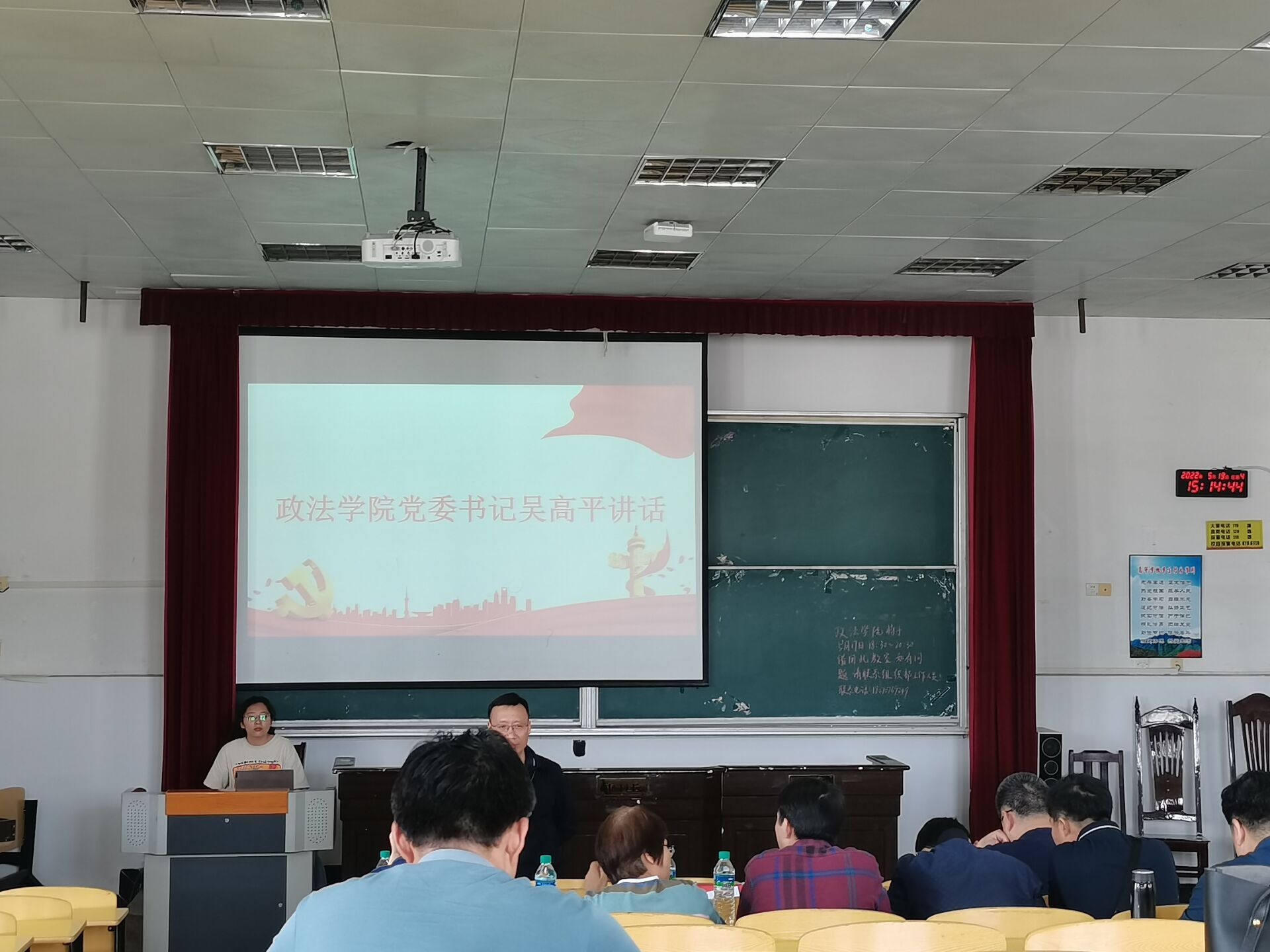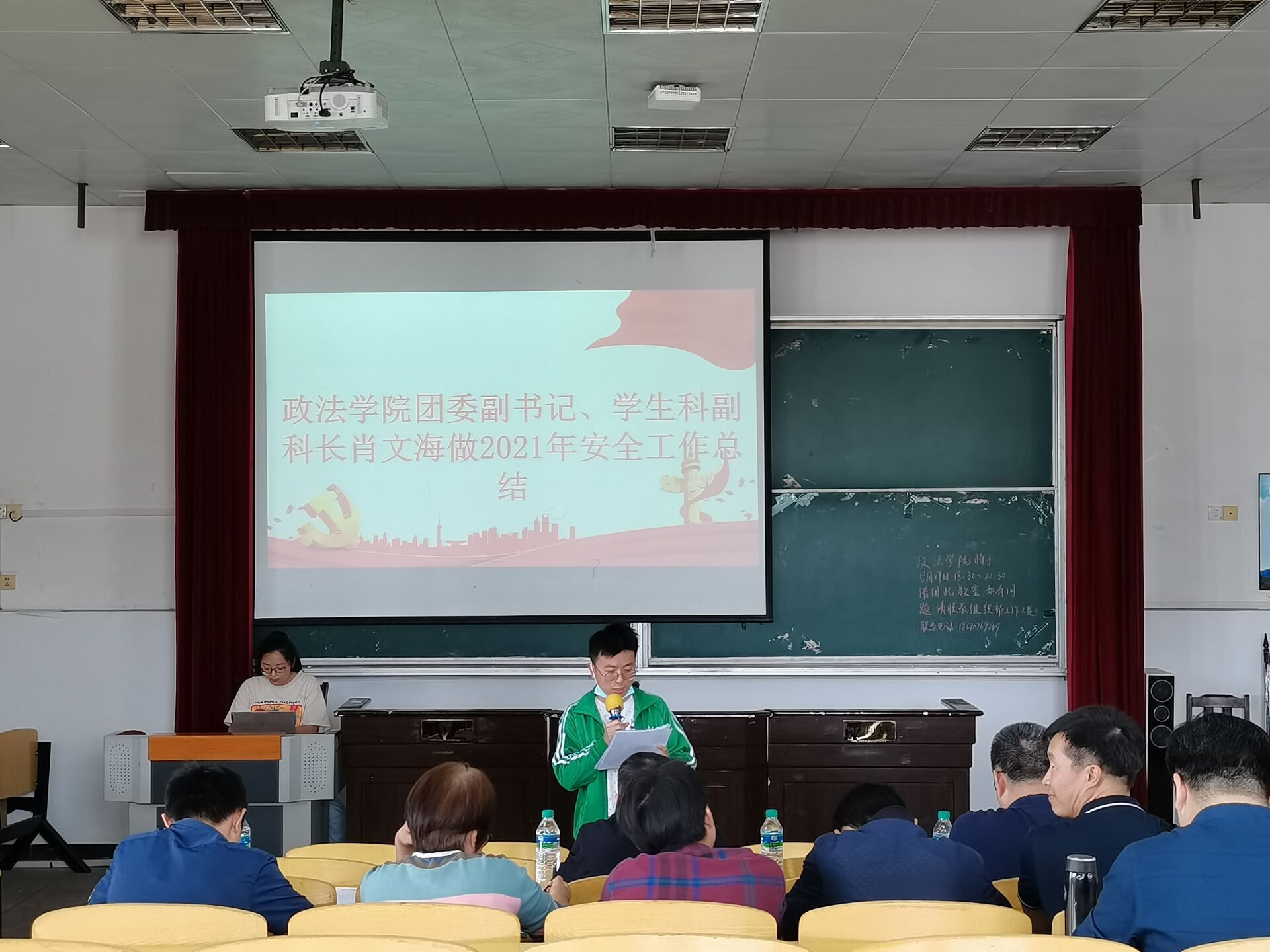 为深入贯彻落实中央和省委关于平安建设的部署要求,全力做好2022年政法学院平安建设工作,切实维护学院师生安全和学院稳定,确保学院工作成效显著,5月19日下午2时30分,政法学院于5栋408召开政法学院2022年平安建设工作会议。政法学院党委书记吴高平出席并讲话,政法学院团委副书记、学生科副科长肖文海主持会议。副院长邹宗根、学院各科室负责人、全体辅导员以及各班班主任、班长参加会议。