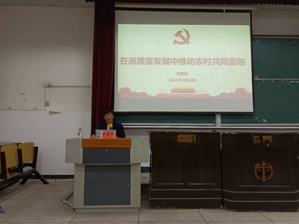 为进一步增强入党积极分子及预备党员贯彻理论联系实际的思想觉悟,培养学员分析问题的能力,我院于2022年5月22日下午14:30在五栋408教室举行《在高质量发展中推动共同富裕》的主题讲座。本次主题讲座由政法学院院长李耀峰主持。
