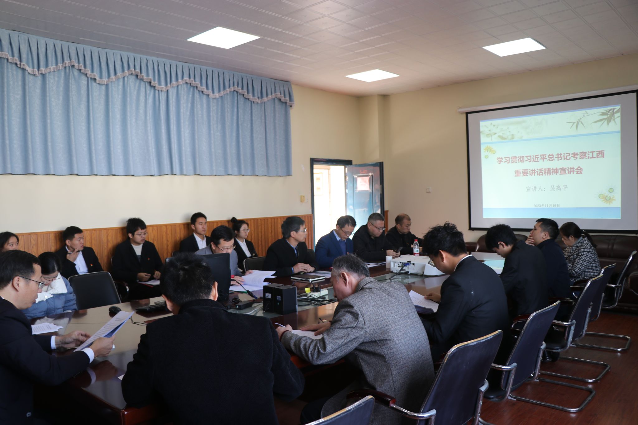 为进一步宣传贯彻习近平总书记考察江西重要讲话精神,奋力开创中国式现代化崭新局面。11月19日上午,政法学院党委书记吴高平在5栋401举行了学习贯彻习近平总书记考察江西重要讲话精神宣讲,共计30余名党员师生代表现场聆听。