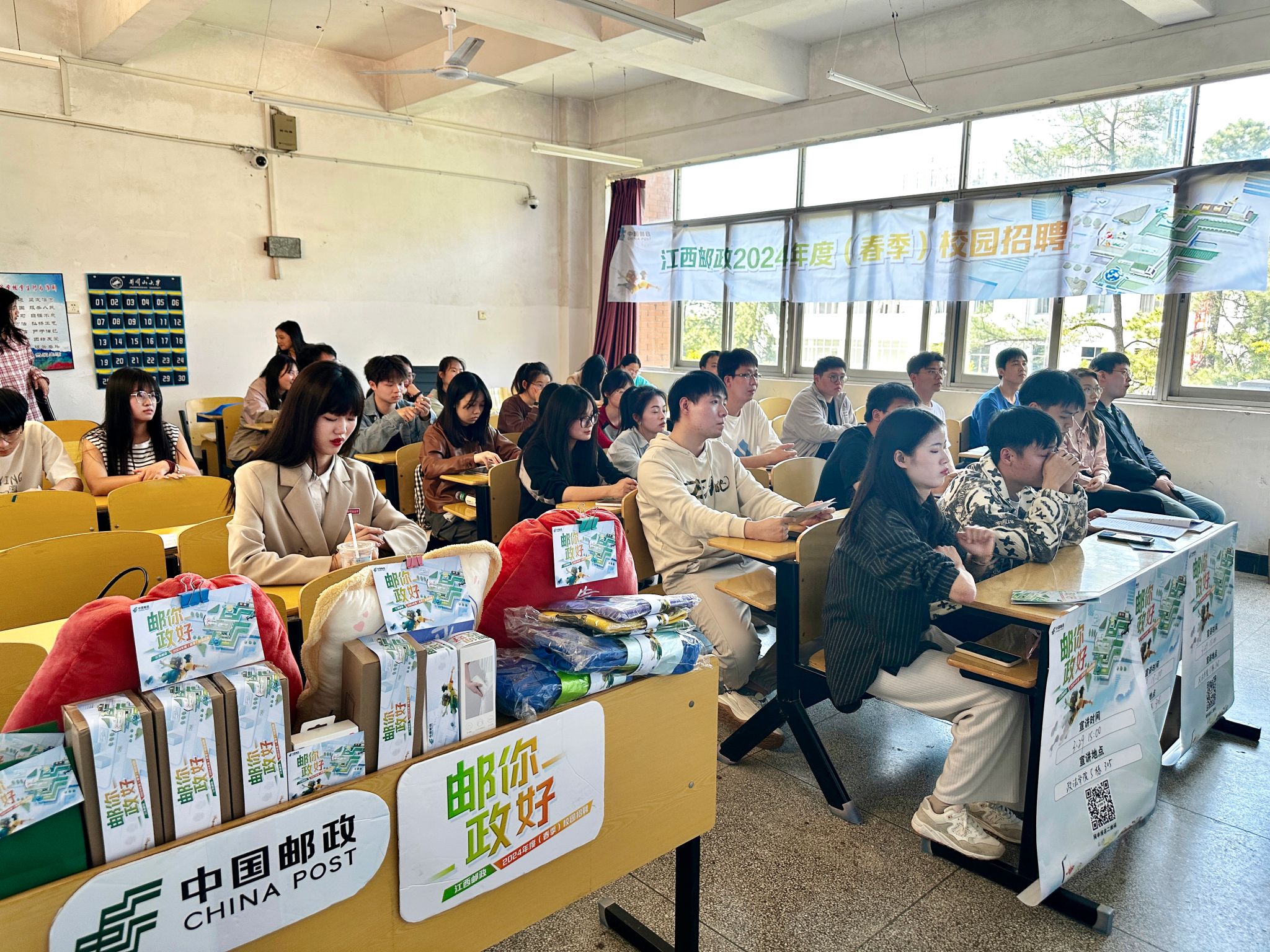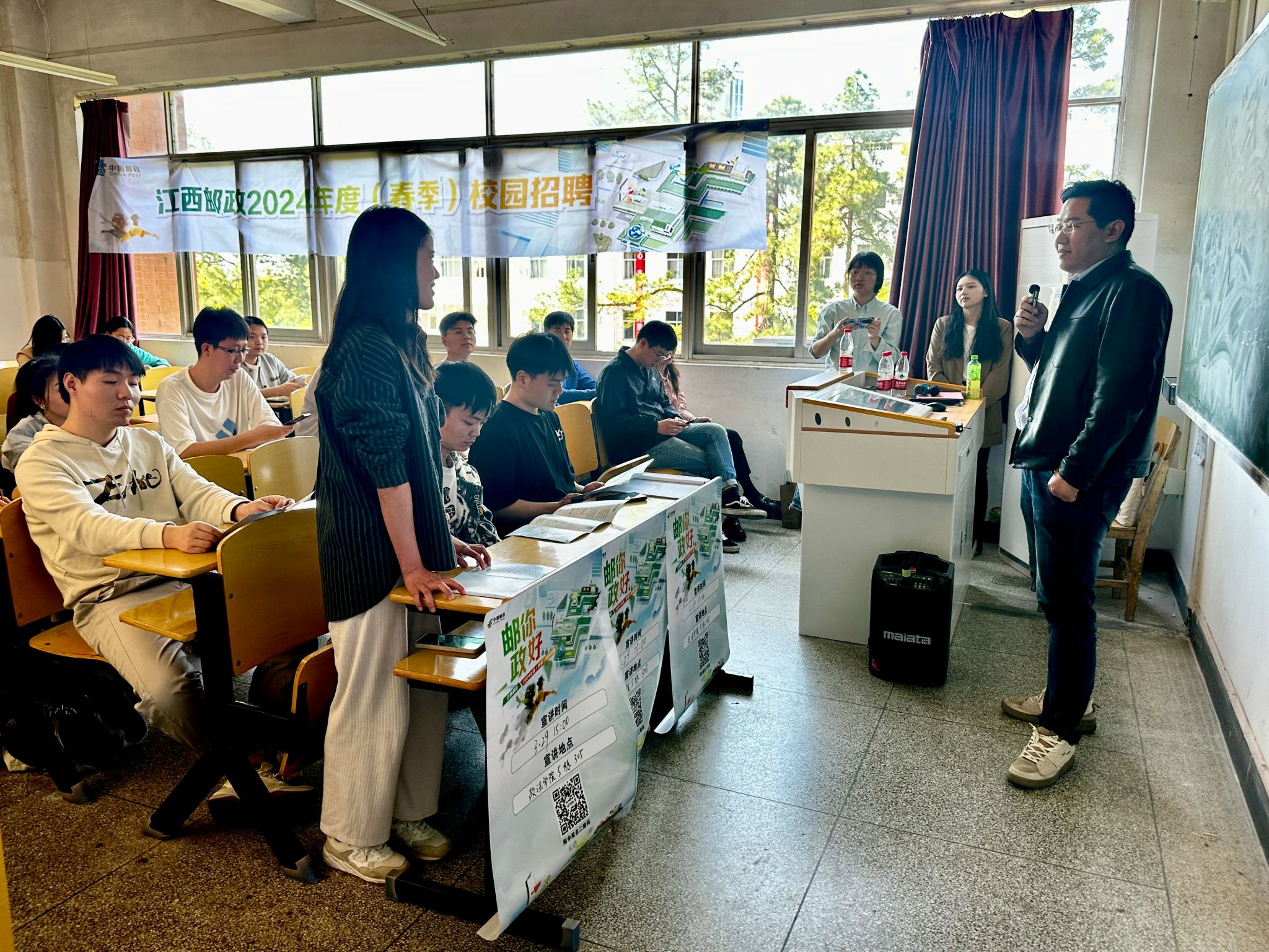 中国邮政吉安分公司人力资源部负责人胡弈暄向同学们介绍中国邮政的发展现状、企业文化、核心业务等基本信息,让大家更加深入了解中国邮政集团。随后,重点讲解了同学们密切关注的招聘岗位、薪资待遇、职业发展空间等内容,帮助毕业生们找准自身定位,树立正确的择业观。中国邮政吉安分公司综合办公室主任、井冈山大学2019届校友徐烽瑜分享了自己在邮政的职业成长经历,与现场的学弟学妹们进行探讨交流。毕业生们结合自身情况提出问题,企业负责人都进行了详细解答,现场活动氛围热烈,大大激发了毕业生们的求职热情。