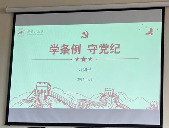 为深入推进党纪学习教育、加强基层党组织的纪律建设,教工第一党支部于2024年5月23日下午14:00在5栋401会议室开展了党纪学习教育,由政法学院党委委员、副院长习剑平同志主讲专题党课,题目为《学条例,守党纪》。