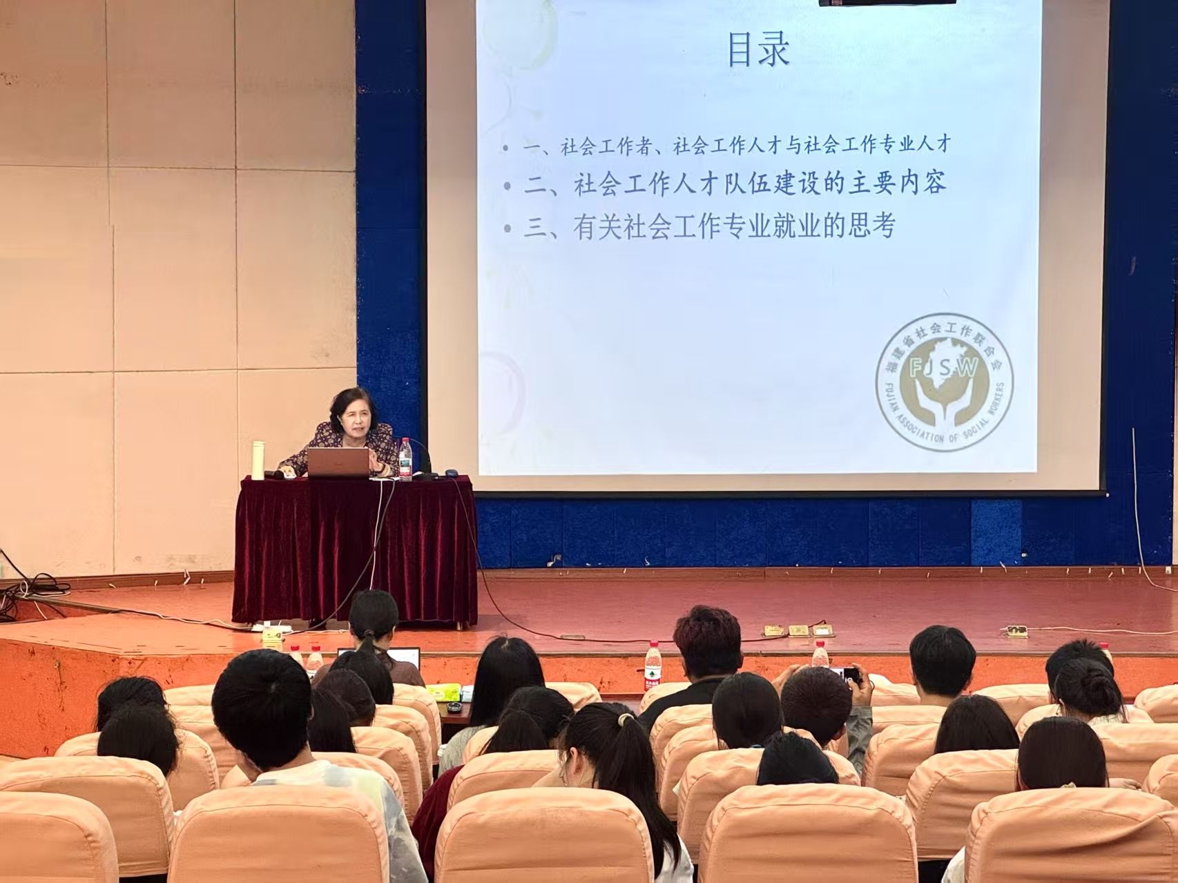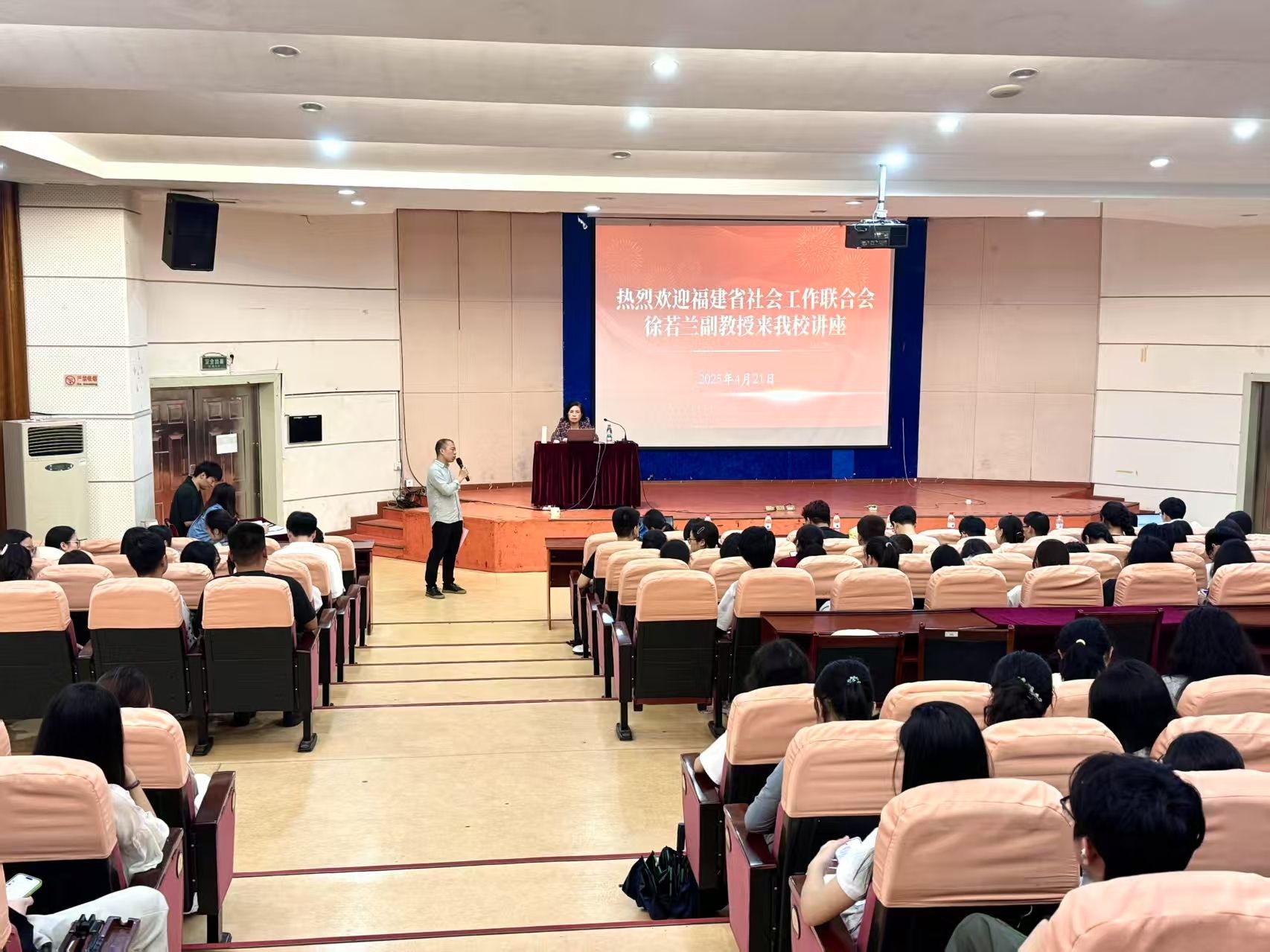 2025年4月21日下午,福建省社会工作联合会常务副会长徐若兰副教授应邀来我院作“我国社会工作人才队伍建设由来与发展”的专题讲座。讲座由王才章副院长主持,社会工作专业师生共200余人参与聆听。