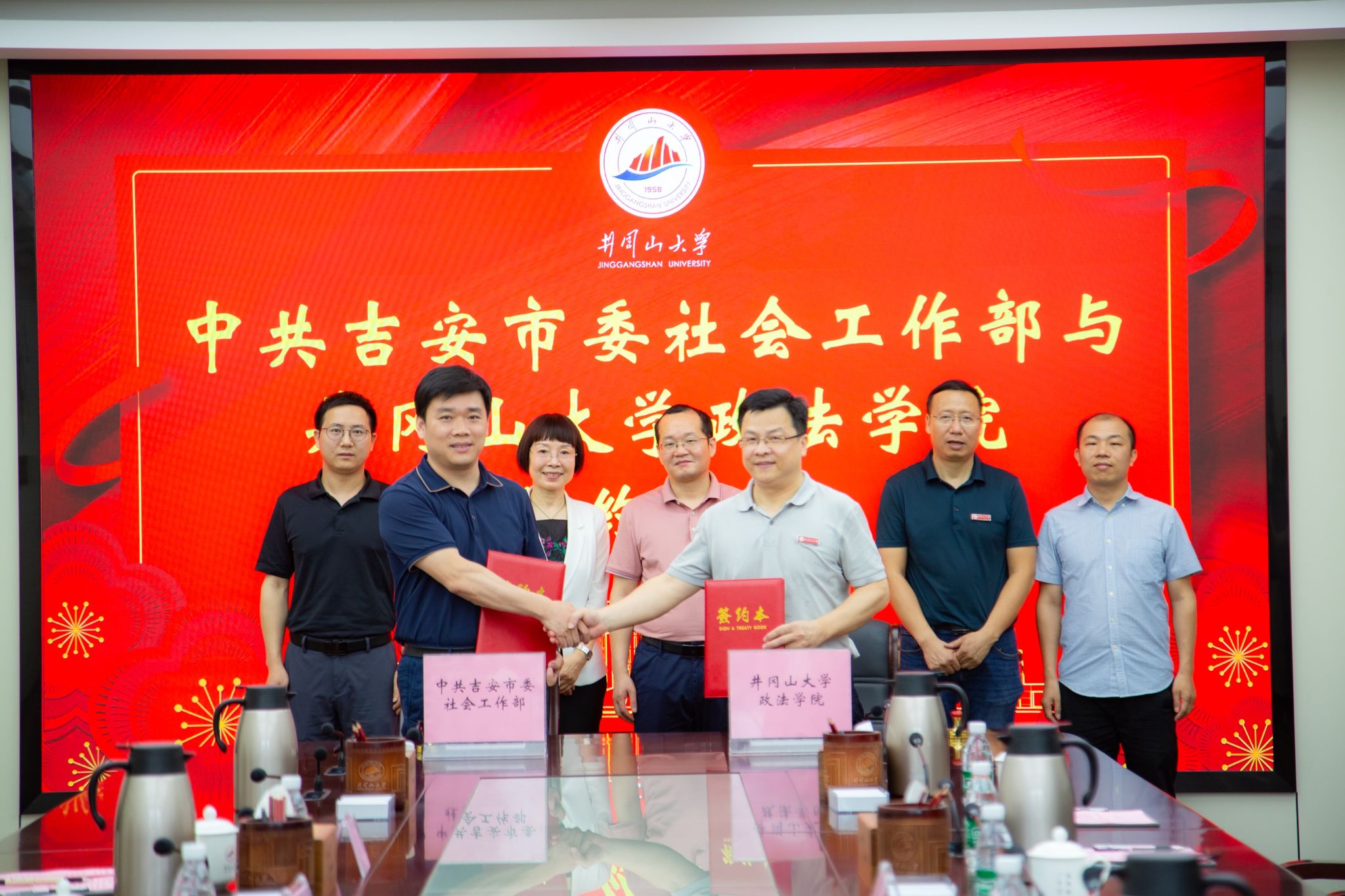 中共吉安市委社会工作部副部长赖厚春、罗家为,井冈山大学政法学院副院长习剑平、王才章,市委社会工作部相关科室同志和政法学院社会工作专业教师代表等共同出席并见证了签约仪式。