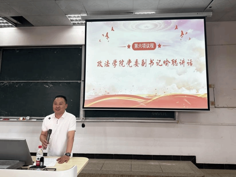 会议伊始,全体肃立奏唱国歌。接着由政法学院团委书记、学生科科长杨婷宣读《井冈山大学“王尔琢”班建设方案》就红色班级培养目标、学员发展规划进行了说明。随后政法学院党委副书记喻聪发表讲话,喻聪为大家成为“王尔琢”班的一员表示热烈祝贺并提出以下四点希望:一是坚定信念,筑牢信仰之基。在学习生活中不断学习党的理论知识,提高政治素养。二是艰苦奋斗,磨砺意志品质。将“攻难关”的勇气和“清正廉洁”的作风紧密结合。三是实事求是,勇于探索创新。从实际出发,将勇于创新的精神融入专业学习,加强专业本领。四是依靠群众,增强服务意识。密切联系群众,增强社会责任感和使命感。
