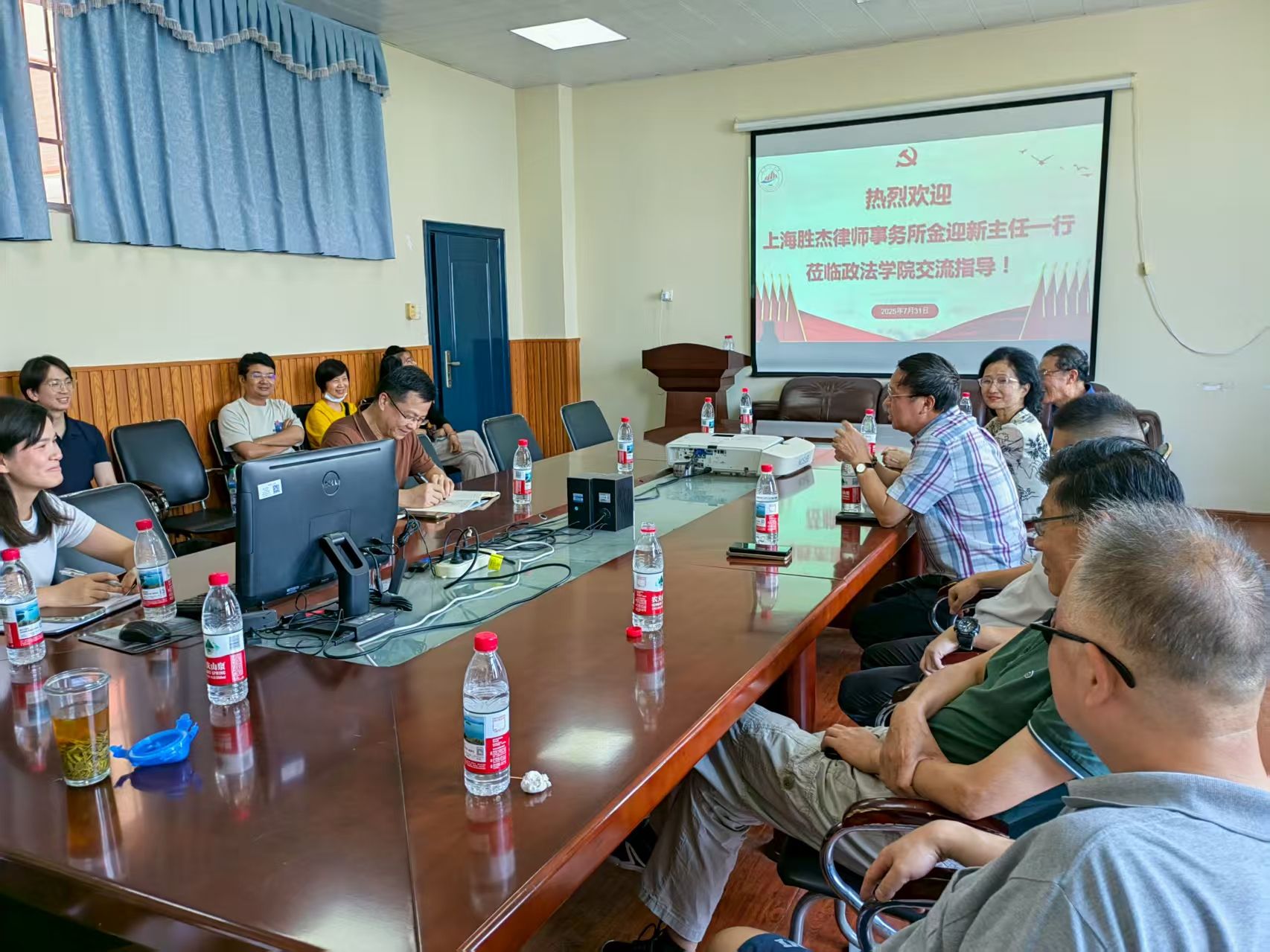 2025年7月31日下午,上海胜杰律师事务所主任、书记金迎新一行到访政法学院开展交流座谈。政法学院副院长习剑平,学院团委书记、学生科科长杨婷以及部分法学学生参加交流座谈。