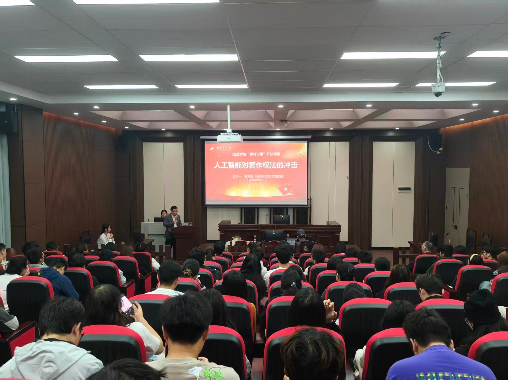 为庆祝井冈山大学建校六十七周年,深入探讨人工智能对著作权法的前沿挑战,回应科技发展为法律带来的现实问题。10月28日上午9时,政法学院“青叶白果”开放课堂第15期在5栋教学楼408教室举行。活动特邀同济大学法学院袁秀挺教授担任主讲,以“人工智能对著作权法的冲击”为主题,为师生带来一场学术前沿讲座。