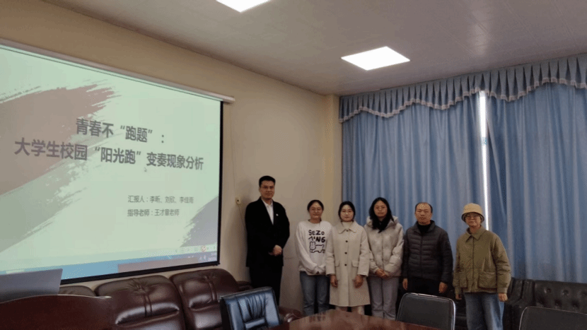 11月20日下午,政法学院“青叶白果”开放课堂第16期在五栋教学楼401会议室举行。24社工刘欣、李昕、李佳雨三位同学以“青春不‘跑题’:大学生校园‘阳光跑’变奏现象分析”为题展开汇报。