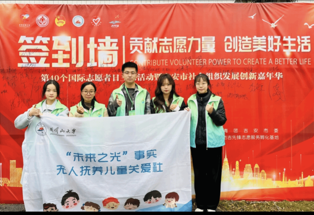 2025年12月5日,在第40个国际志愿者日之际,由吉安市委社会工作部、市民政局、团市委联合举办的“贡献志愿力量 创造美好生活”主题活动暨志愿服务组织发展创新嘉年华,在吉州区兴桥镇东塘村举行。井冈山大学政法学院的挂靠社团“未来之光”儿童关怀与发展协会作为学校唯一代表应邀参展,并凭借扎实的公益实践与创新服务模式获得现场多方肯定。