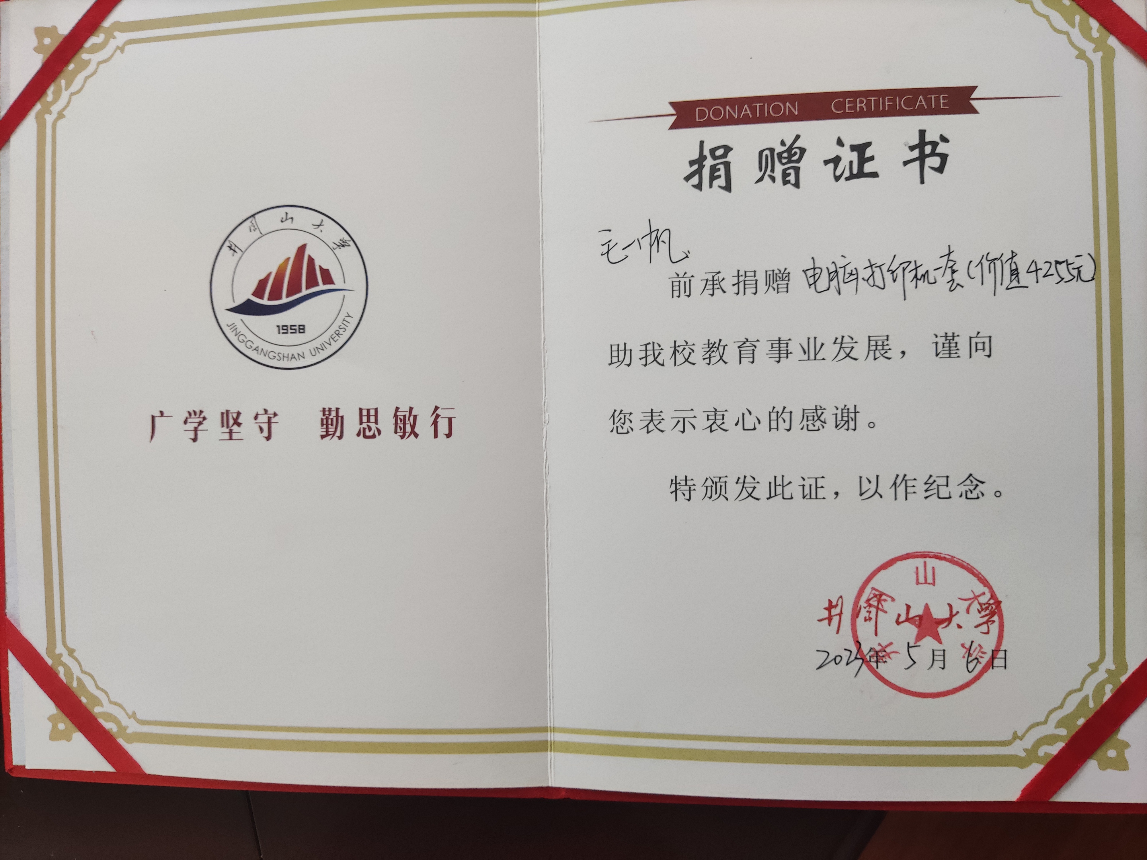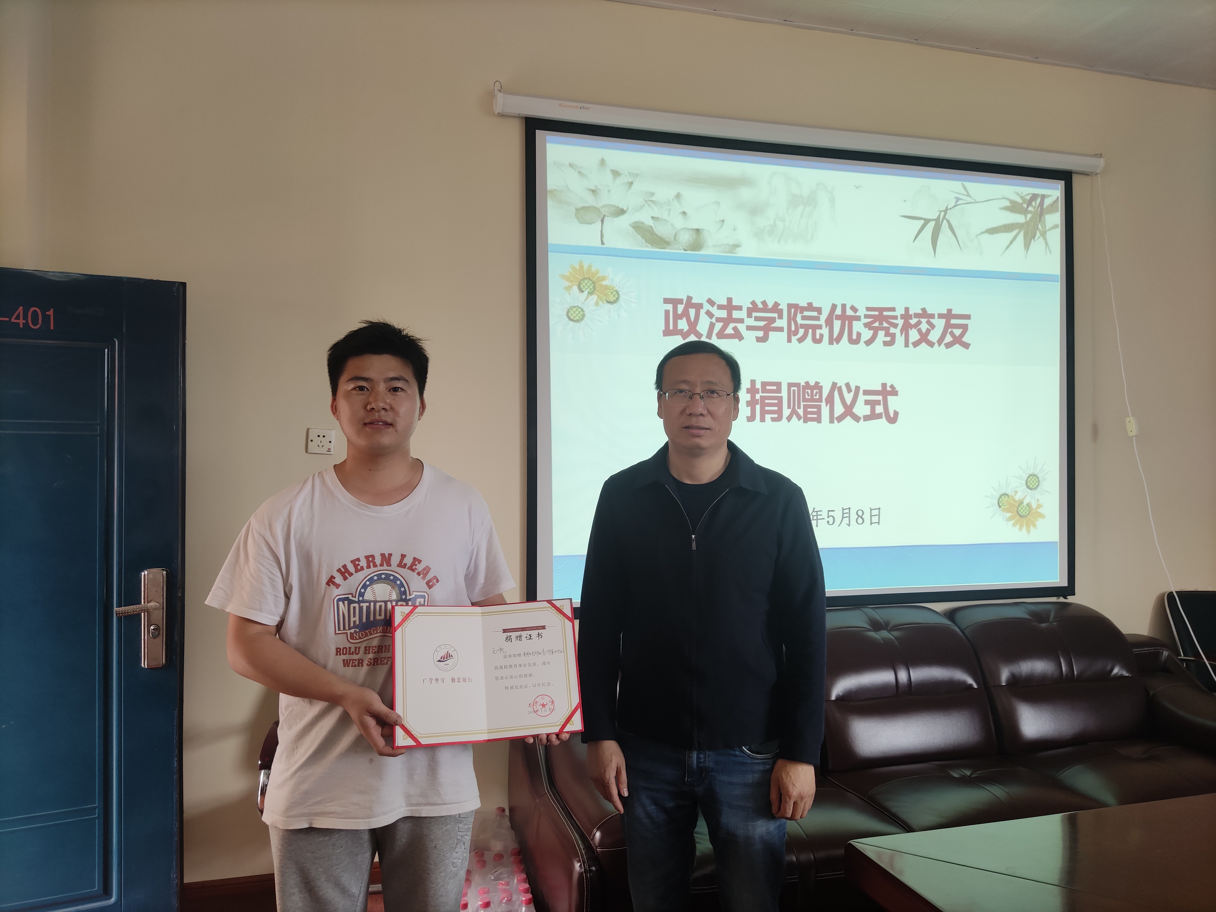 2023年5月8日,政法学院2016级公共事业管理专业的优秀校友毛一帆,向政法学院捐赠了电脑和打印机各一台,供老师们报账打印等使用。毛一帆校友毕业后勤勉努力,自主创业的同时,非常关心学院的发展,通过班主任老师等渠道了解“能为学院做点什么事”;此次捐赠,既解决了老师们使用内网报账不方便的难题,也深化了学院和校友的沟通交流。