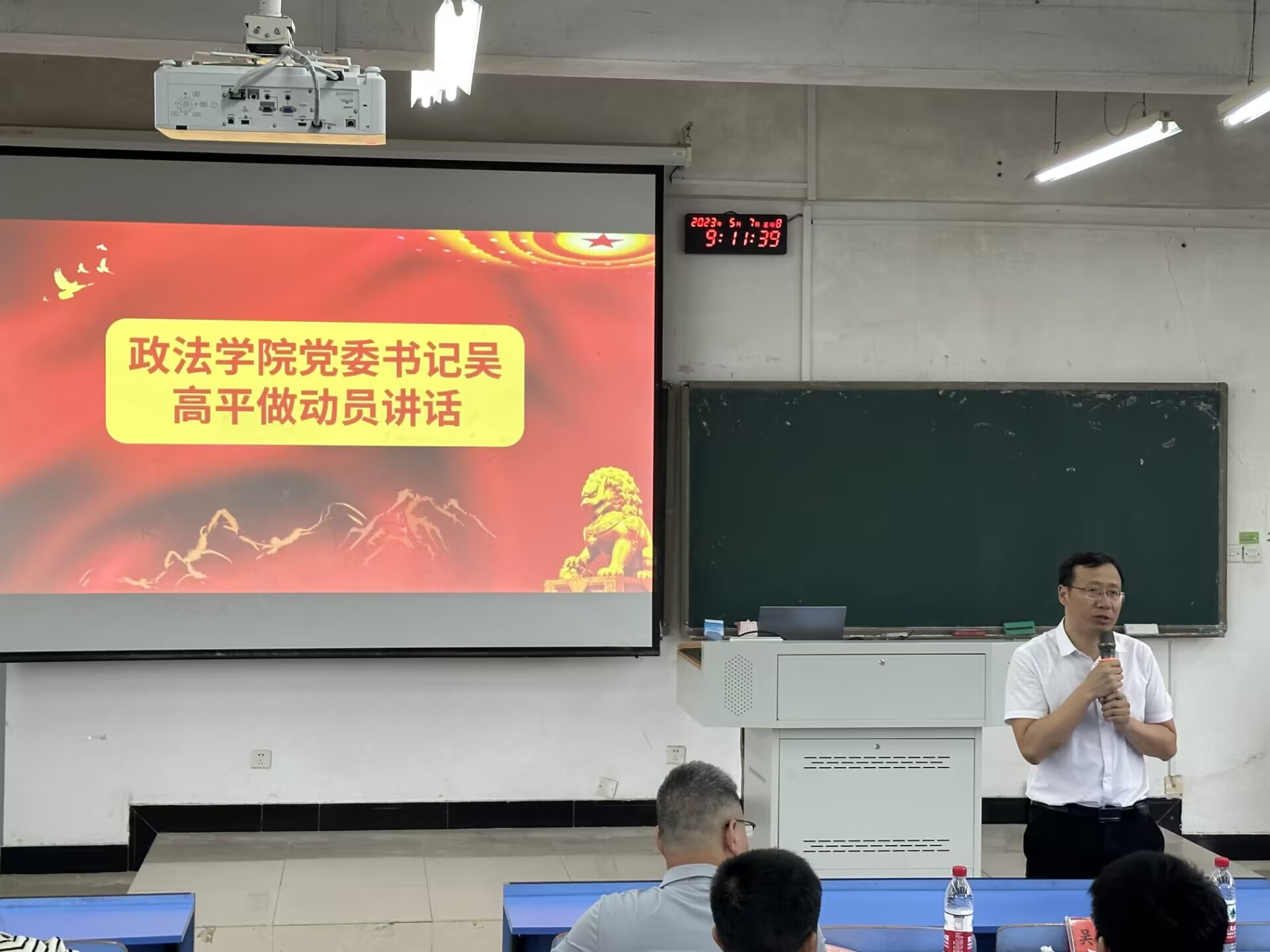 2023年5月7日上午,井冈山大学政法学院学习贯彻习近平新时代中国特色社会主义思想主题教育专题读书班开班仪式在10栋A010举行,政法学院全体处级领导干部、党员及入党积极分子参加。