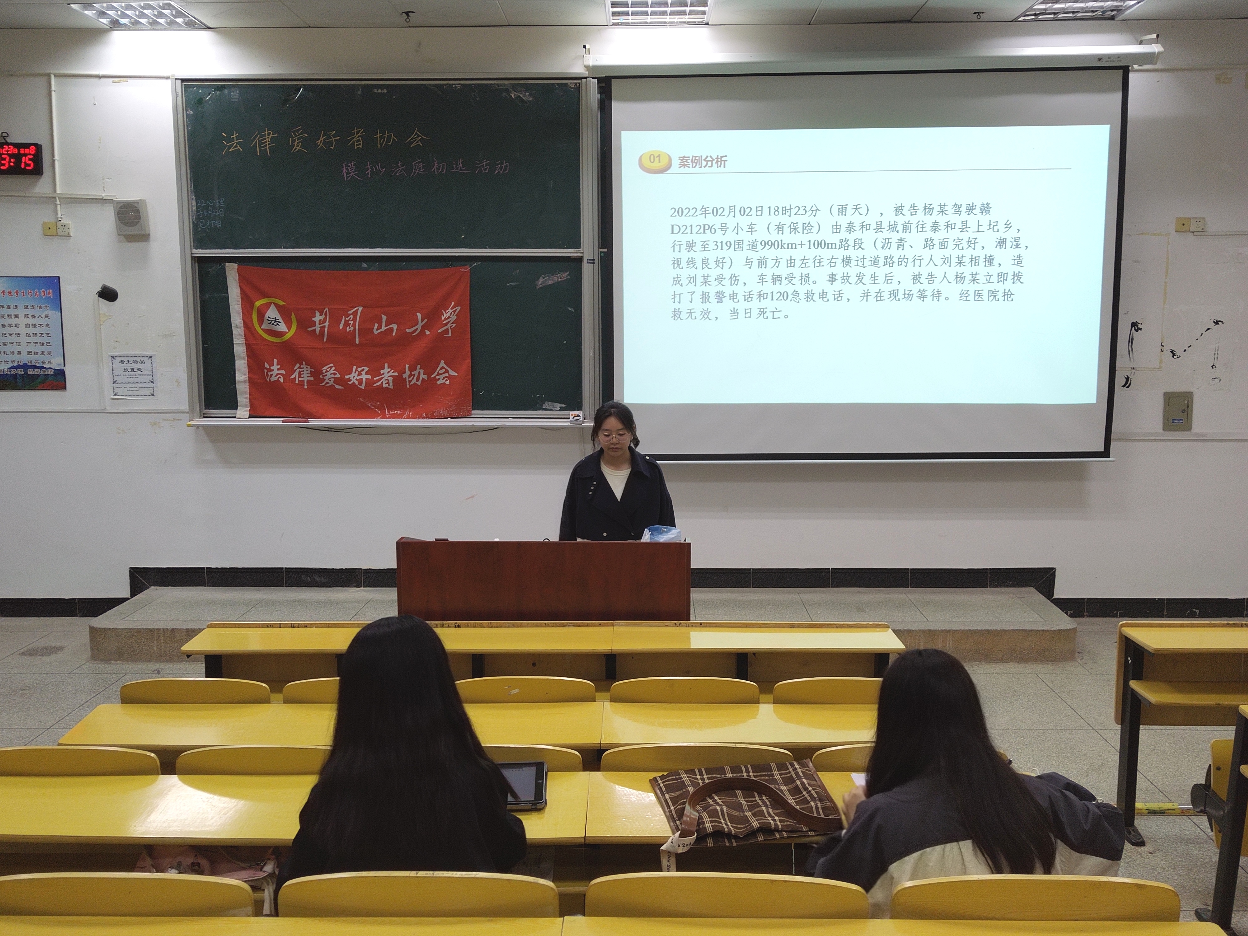 活动伊始,法律爱好者协会工作人员先向参选学生讲述了初选的规则。然后,选手们换位成为案例当事人的法律辩护,依次对交通事故进行具体的分析。选手不同的思路看法展示出个人的法学专业素养与分析理解能力。经过激烈的角逐,政法学院学生王娟、王婷、易帅、孔锐、李添钰、古婷婷、梁雨微、周文俊、江芳灵、侯也函,黄俊杰入围复赛。