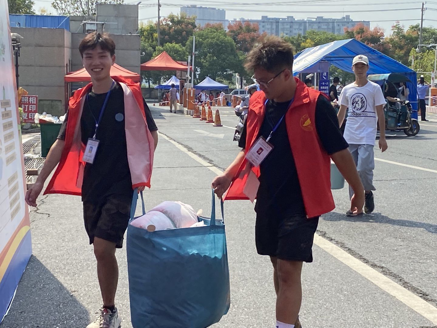 早上7时,工作人员分别于两处设立迎新工作点,身穿统一式样志愿者服,开始迎接新生。在服务过程中,志愿者帮助新生搬运行李,为其介绍校园基本情况,并引导新生前往19栋办理相关入学手续。在此期间,工作人员也有条不紊的收集好新生的各项入学必备物品,并用饱满的热情对待每一位新生,为其答疑解惑,深刻体现志愿者为同学服务的奉献精神。在历时两天的迎新活动中,我院老师关心迎新工作,分别在两个迎新点了解相关工作,展现对新生的浓浓关怀之情。