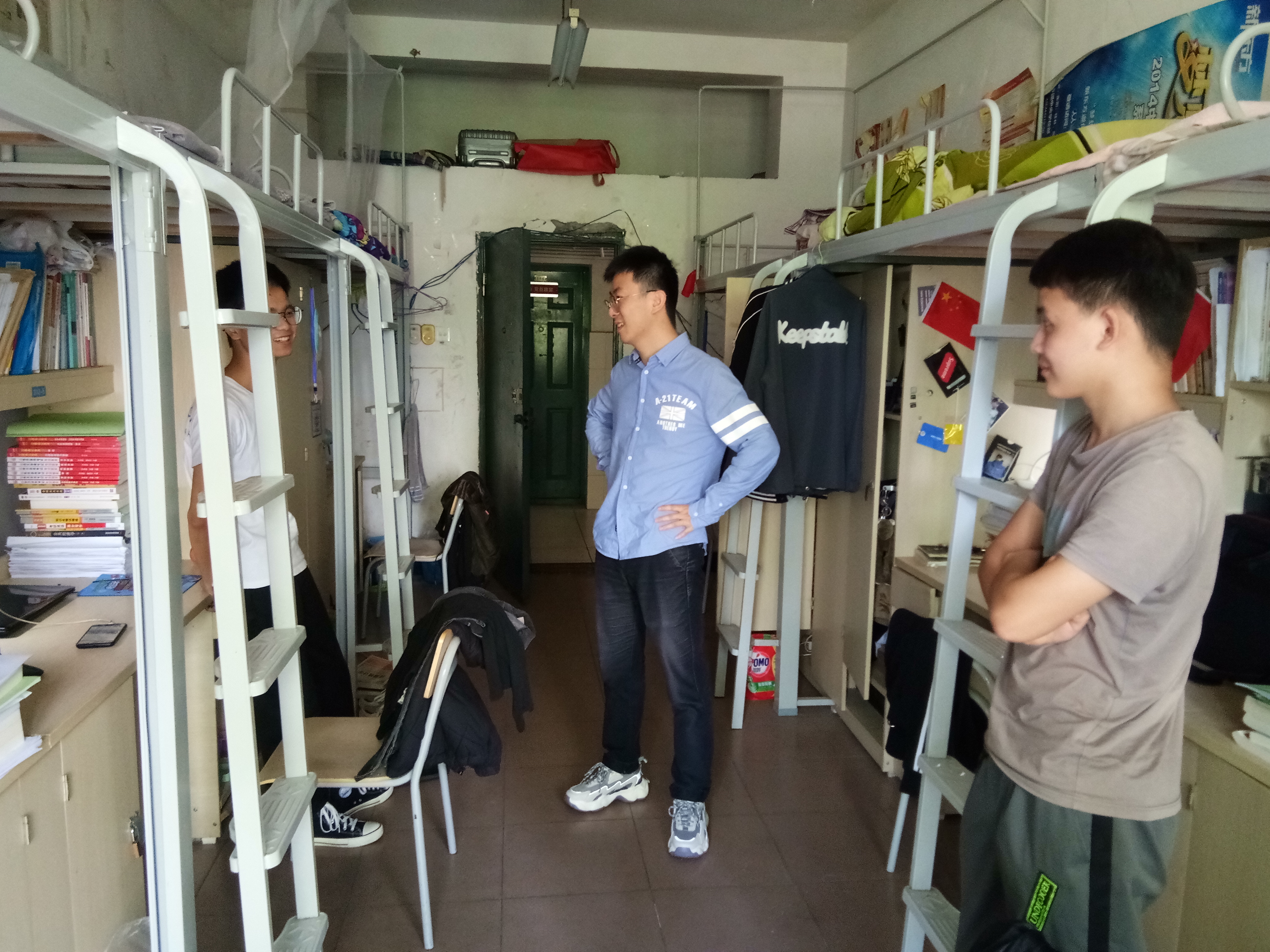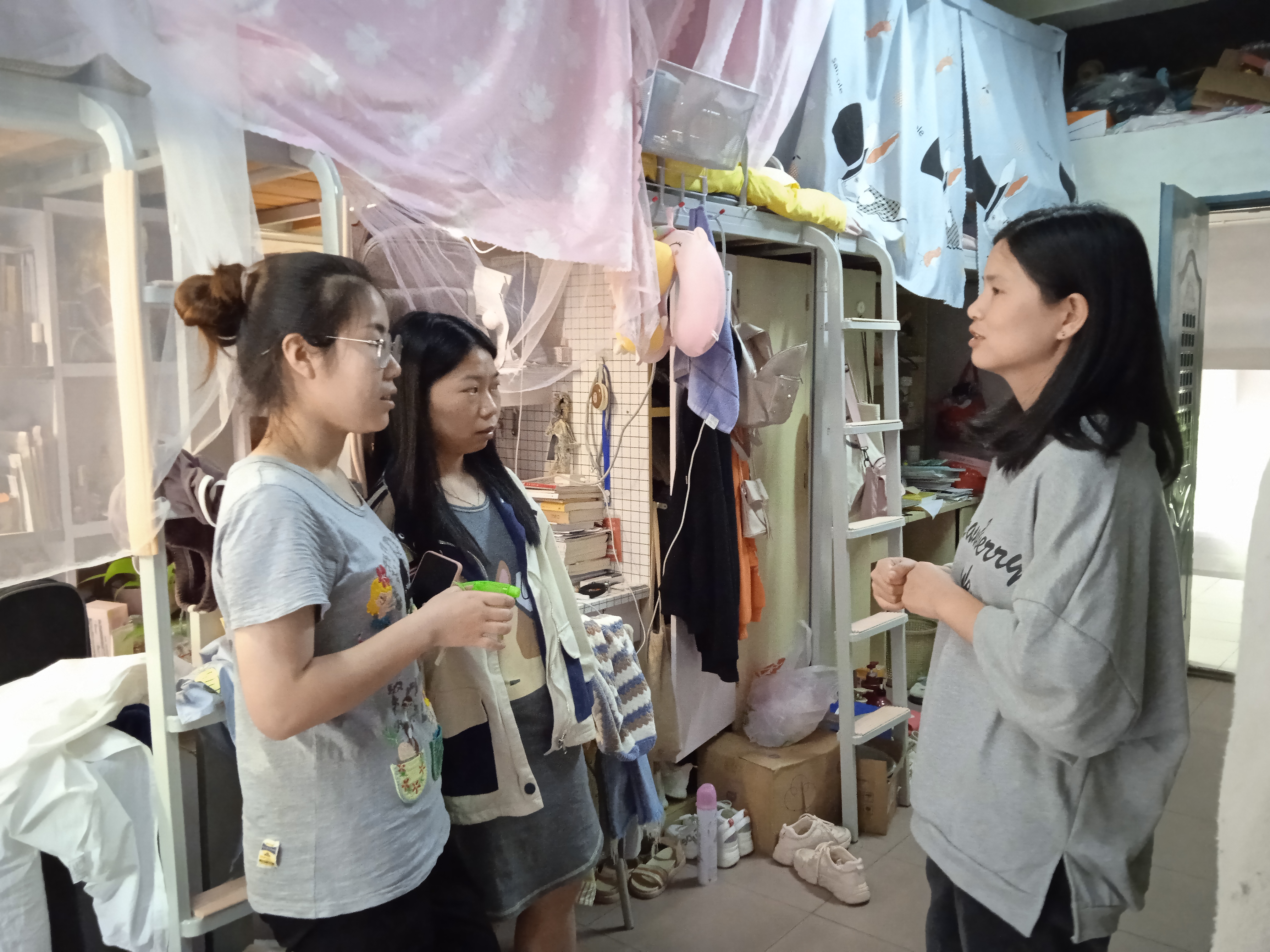为了切实落实学校《关于切实做好五一假期学校安全稳定工作的通知》、《学生工作部(处)关于做好2021年五一假期前后学生安全工作的通知》要求,更好地在学生中开展安全教育和心理健康,了解学生的思想、学习、生活状况。4月30日下午3时,政法学院团委书记、学生科科长杨婷,辅导员康积勤、肖文海深入宿舍走访学生。