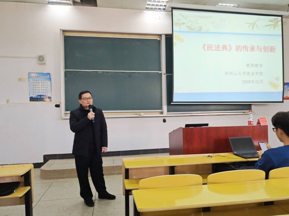 12月6日下午,政法学院党委在五栋407室开展了学习《民法典》专题辅导,由政法学院副院长欧阳晓安主讲,政法学院党员和入党积极分子参加此次专题辅导。