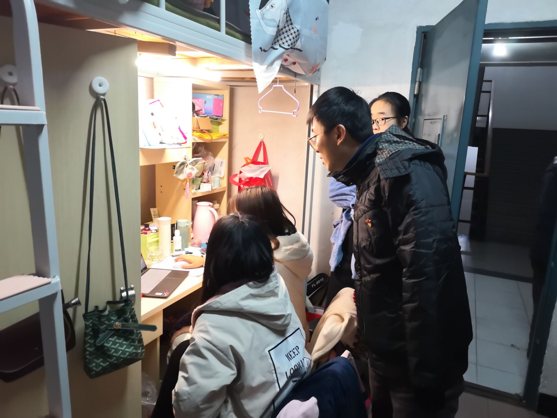 走访过程中,老师对大部分学生寝室的卫生状况加以肯定,关心学生的生活状况并提醒大家天气寒冷,疫情仍未结束,要定时开窗通风,保持寝室卫生,平日里作息规律、注意用电安全,不要使用违规电器。在交谈中,老师对如何调解寝室矛盾、室友间的相处之道也提出建议,鼓励考研学生合理规划时间、保持良好心态、坚持不懈,也耐心为学生解答关于专业学习和未来规划选择等方面的问题。同学们表示感谢老师的暖心关怀,会努力维持好寝室卫生环境,在生活中要形成良好生活习惯、规范作息,在学习上更加努力奋斗,学好专业知识,掌握专业技能,不断提升自己。