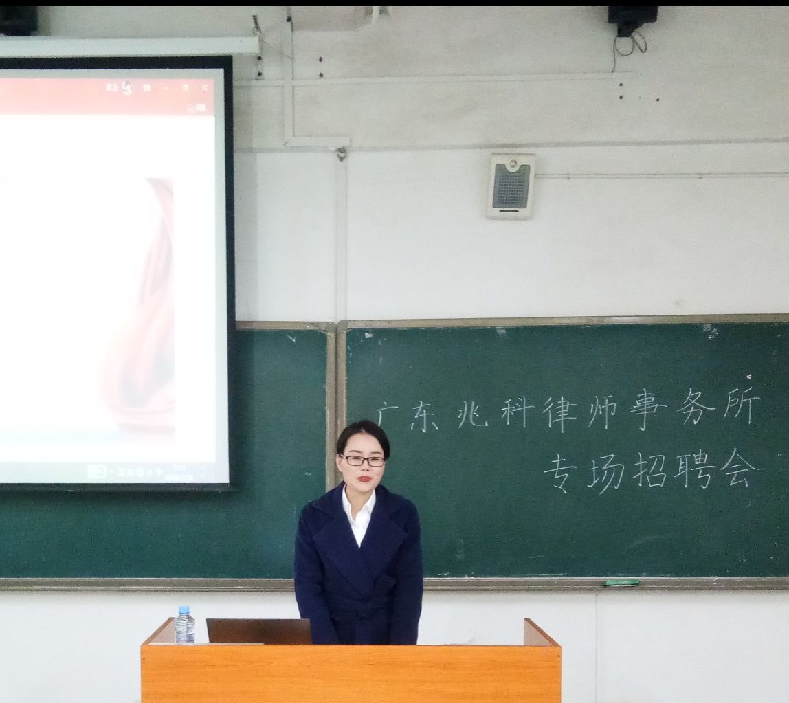 为积极促进毕业生就业,拓展毕业生就业渠道。11月30日下午3时,我院于十栋A-011教室举办广东兆科律师事务所专场招聘会。学院副院长欧阳晓安,学院党委副书记吴高平到场指导招聘事宜。