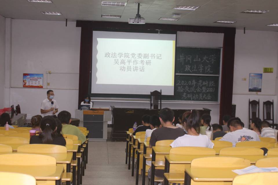 为提升学生对考研的认识,明确考研目标和方向,6月22日18:30,我院采取线上线下相结合的方式于5栋408举行2020考研经验交流会暨2021考研动员大会,并进行线上直播。政法学院党委副书记吴高平出席本次活动。 活动邀请了2020年部分考研成绩优异考研学生韩浩川、邱小莉、王晓霞、孙思敏、王志贤、袁必磊依次分享考研经验。韩浩川和邱小莉就择校标准、调整心态等方面详细讲解。他们总结自己的考研经验,鼓励我院学生要持之以恒,相信自己。王晓霞和孙思敏主要分享了英语、政治方面的学习方法与经验:首先要有良好的生活习惯,学会管理时间;其次要不断从失败中总结问题,随时调整心态坚持奋战。王志贤和袁必磊根据自己的亲身经历,介绍学习专业课的方法、参考书籍来源等。他们提出谐音、串字和滚车轮等背书技巧,并为大家指明复习的方向。为增强互动性,活动设有观众提问环节,大三学生提出他们对考研的疑问,他们也为之耐心地解答。线上同学也积极互动提问,并表示从他们的解答中受益匪浅。 交流会上,学院党委副书记吴高平作考研动员讲话,他从“考研是一个人生的转折点,可以弥补高考的遗憾;考研为以后找工作奠基了一个很好的基础;考研可以让我们站在更高的舞台上发展;考研是唯一提升学历的机会”四个方面阐释考研的重要性。最后,他提醒学生,在疫情期间,要抓住国家扩大考研招生规模的新政策;更要明确考研目标,给自己充分的信心。他还列举了一些成功的考研实例激励我院学生要有信心,鼓励其不畏前方荆棘、大步前行。 此次交流会的顺利举行,有利于促进我院学生对考研的了解,加强了其对考研目标的确定性。预祝2021年我院学生再创考研佳绩。(图文/政法学院记者团 李霞)