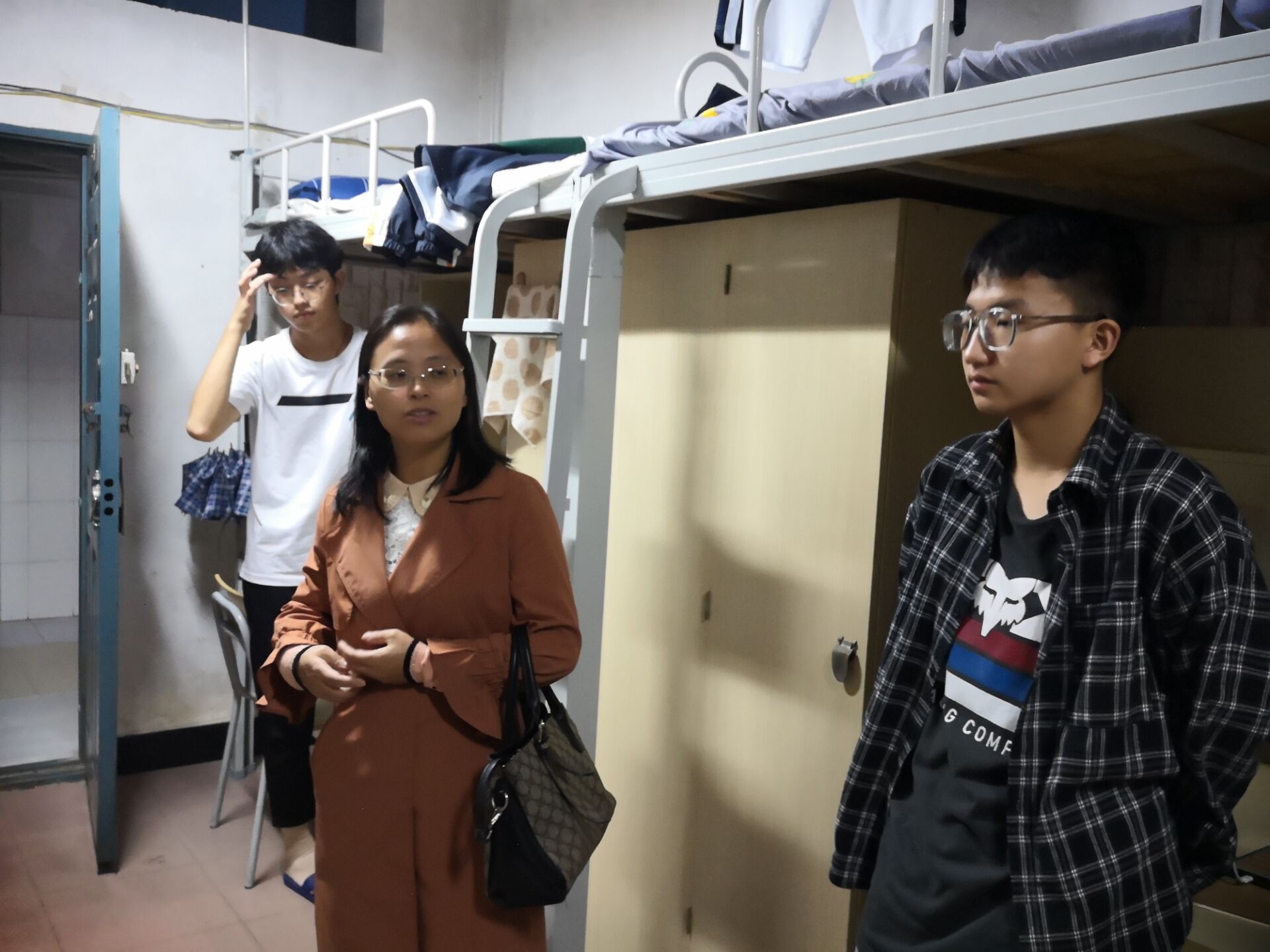 为了解新生情况,帮助其尽快适应大学生活,9月27日晚19时00分,学院院长仰和芝,党委副书记吴高平,副院长欧阳晓安,团委书记、学生科科长杨婷及新生班主任、辅导员、学生干部等一行走访新生寝室,看望新生。