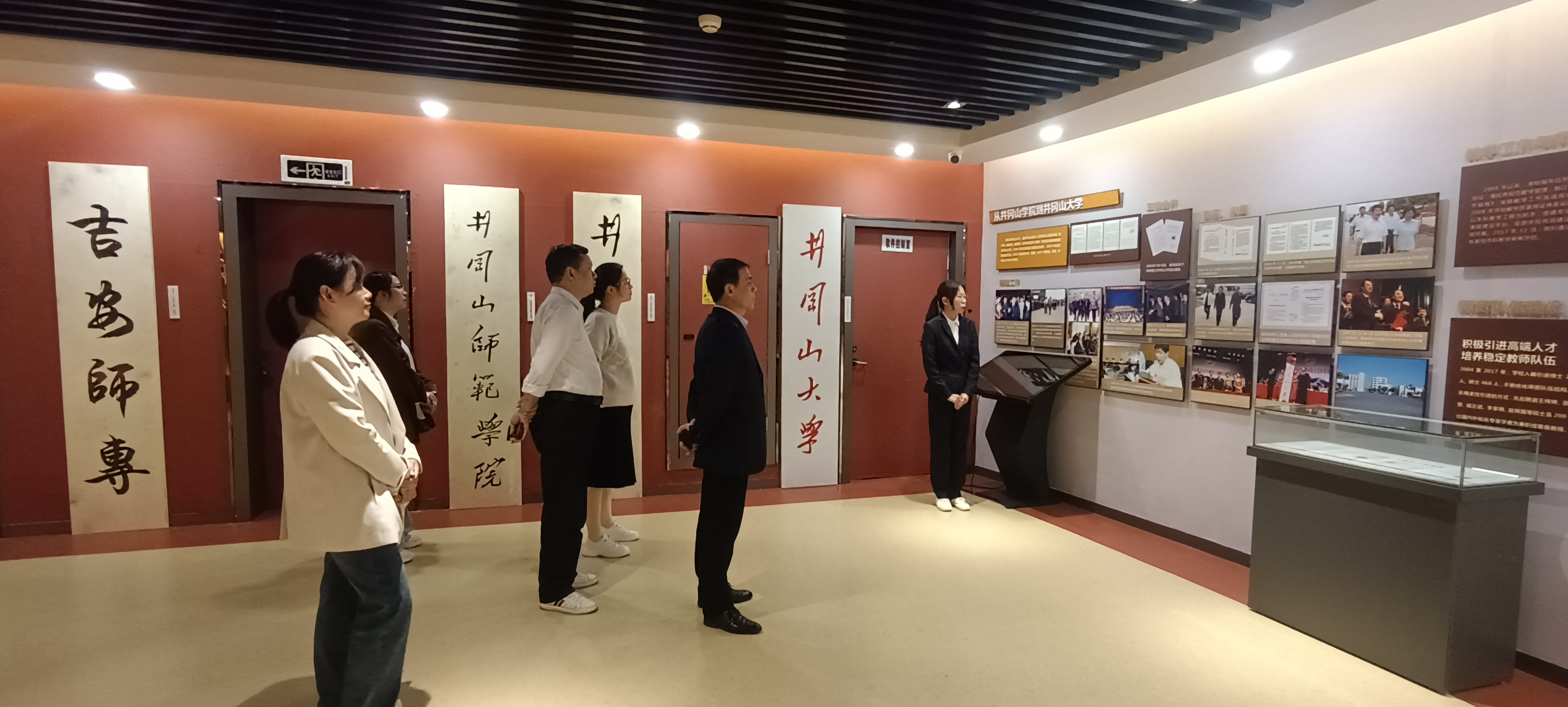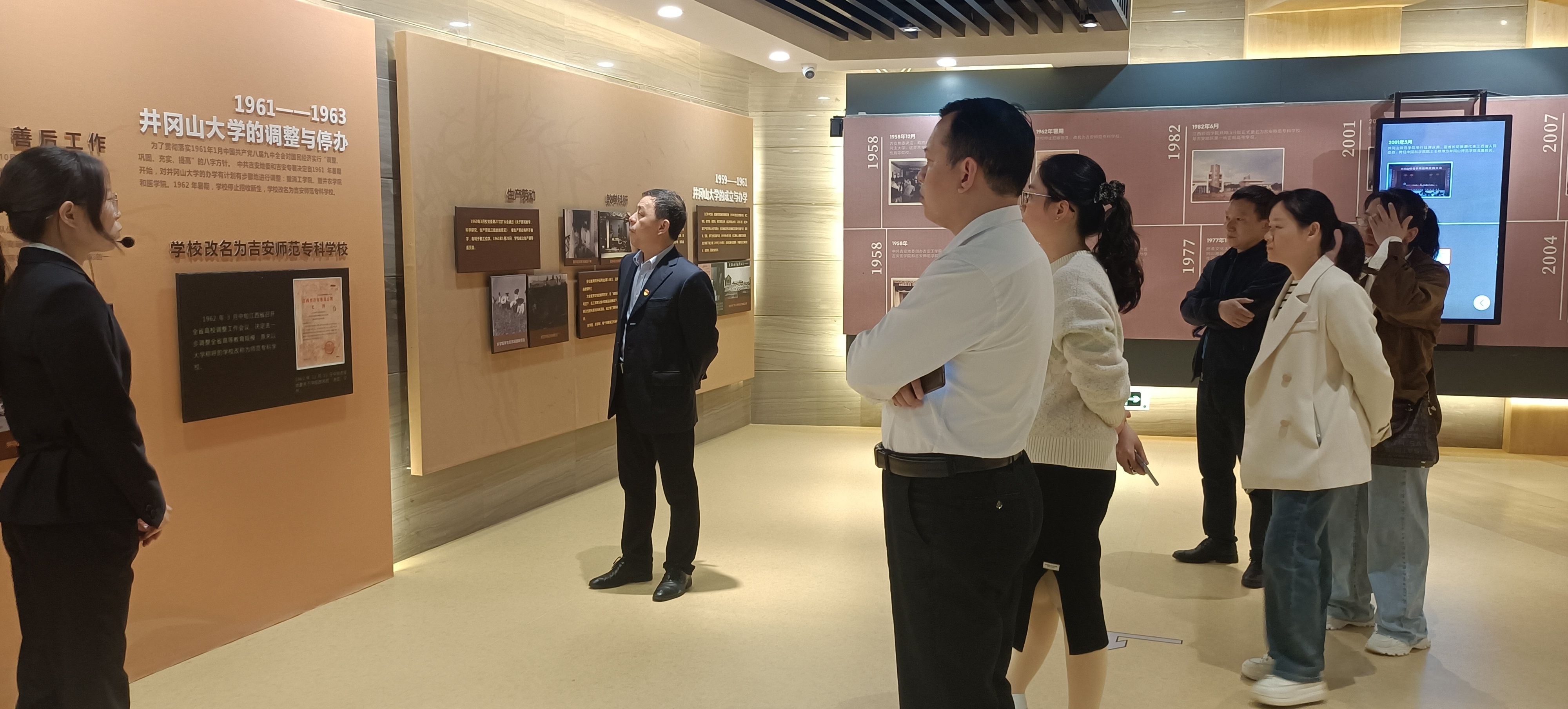 下午,全体党员干部首先来到校史馆参观。随着讲解员的讲述,一张张照片、一件件实物、一段段文字在年轻党员的眼里开始变得生动而有神采,大家为井冈山大学不平凡的发展历史感到骄傲。参观结束后大家根据校史和选学内容,结合所在岗位实际谈体会、讲收获、摆问题、想办法,学习气氛既严肃又活泼。