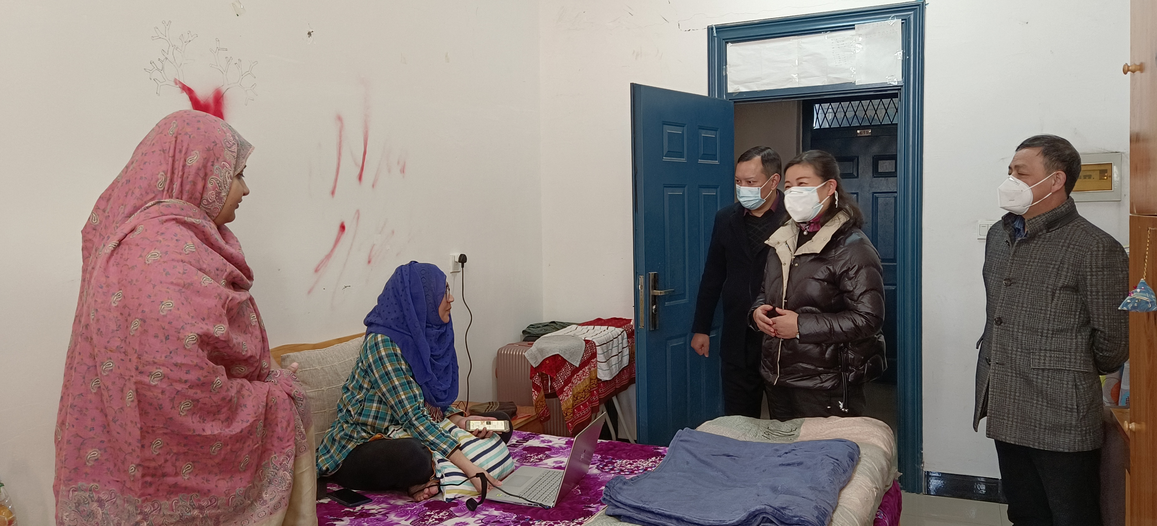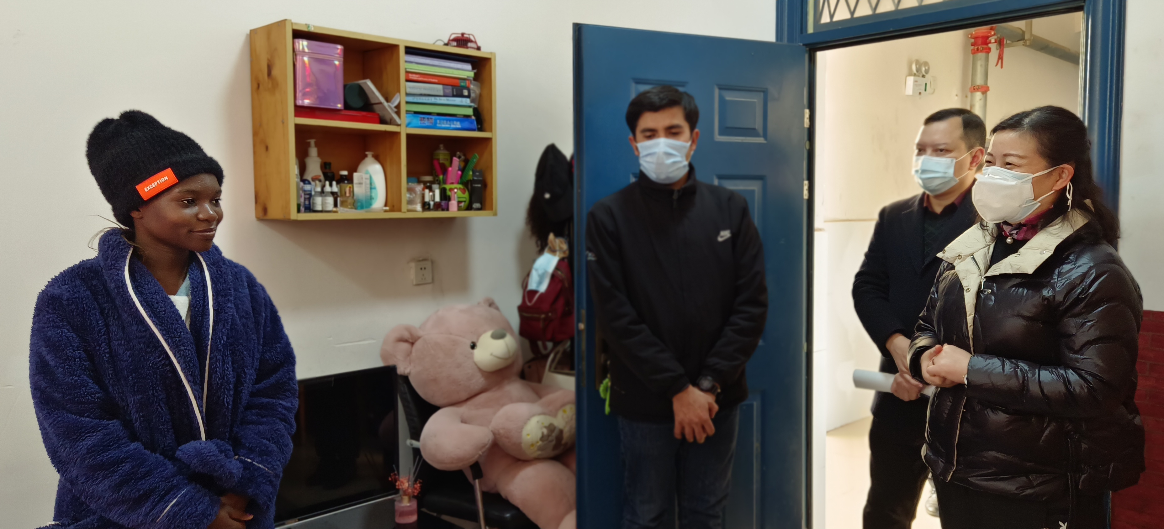 12月19日下午,廖岚副校长在国际学院领导班子成员的陪同下,深入留学生宿舍检查指导留学生工作。